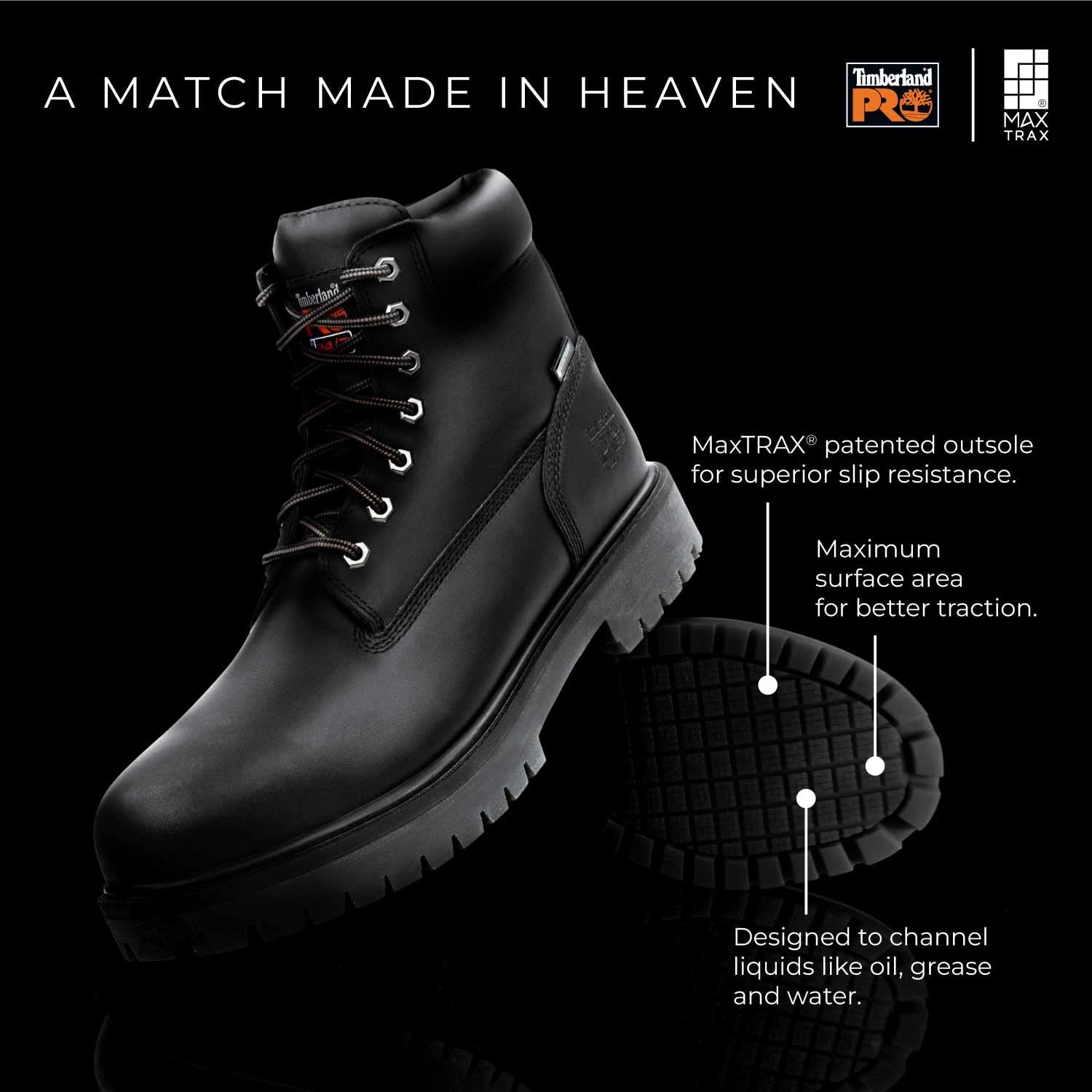 Oil and slip resistant Thermoplastic Urethane (TPU) outsole with MaxTRAX tread for superior slip resistance