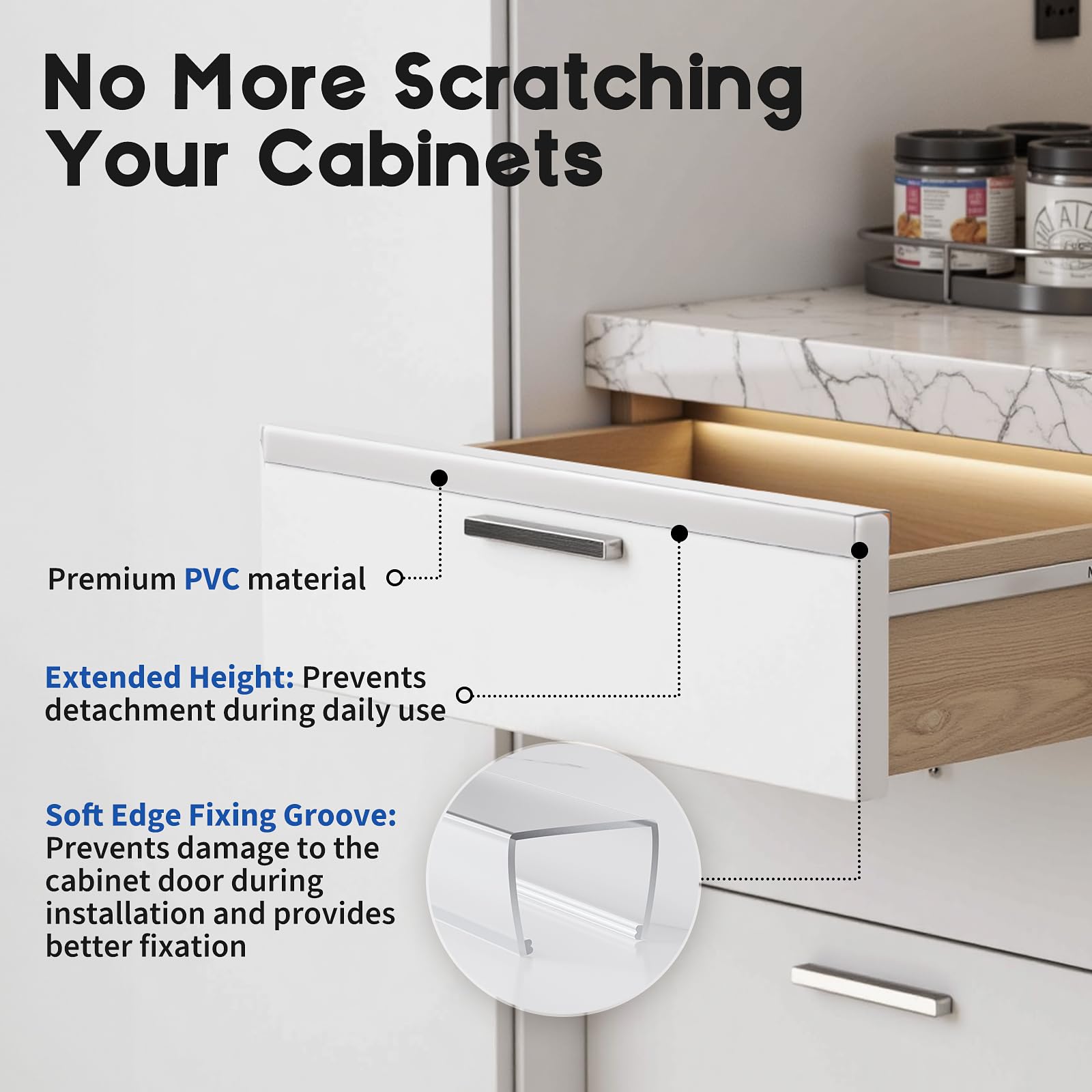 Soft-edge Design - Cabinet protectors features a soft-edge design with just the right amount of grip to stay firmly in place through daily use, yet gentle enough to prevent surface scratches during installation.