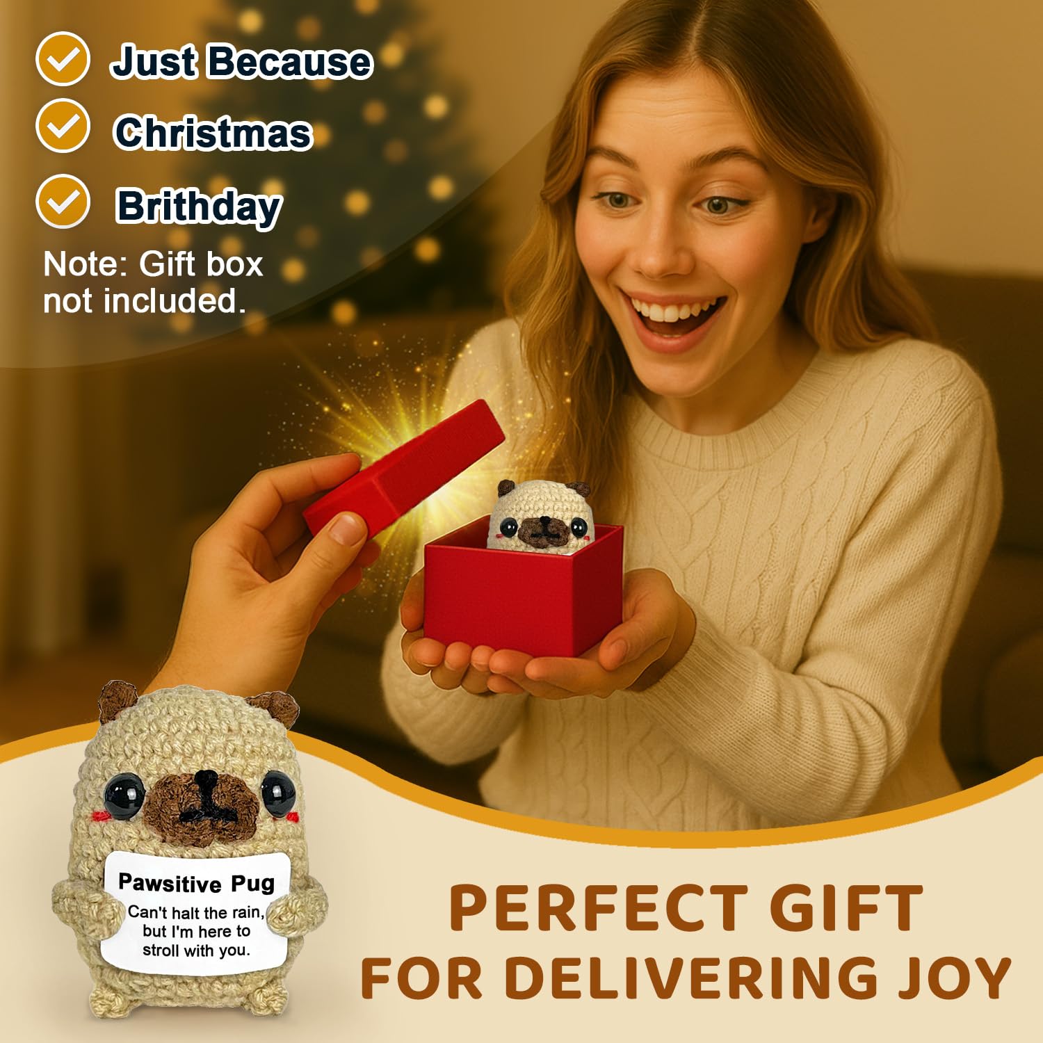 Cozy Pug Decor for Any Space: Beyond being a pick me up gift, this knitted puppy makes a charming addition to any home or office decor, bringing warmth and a reminder of love and help to any setting