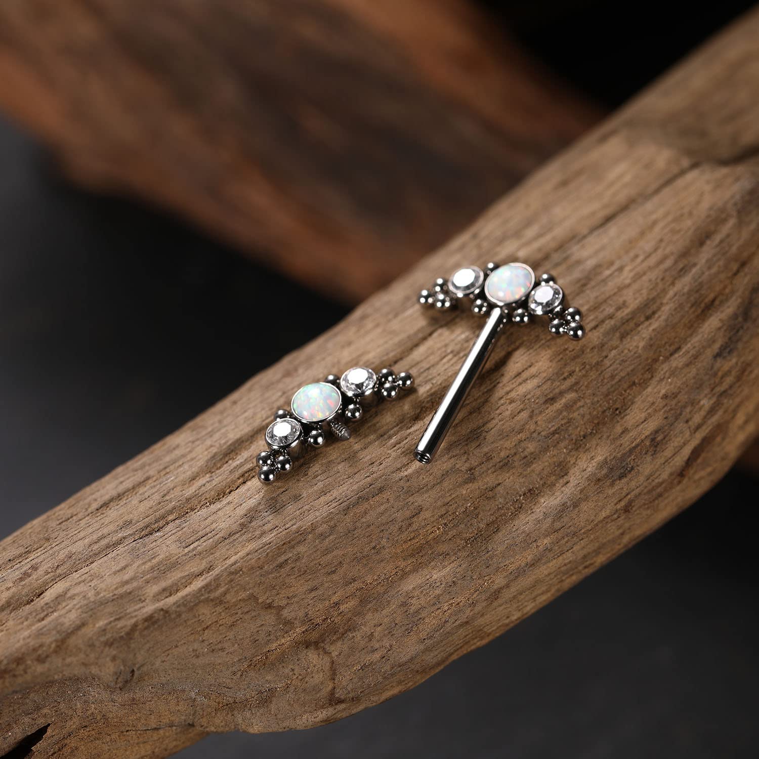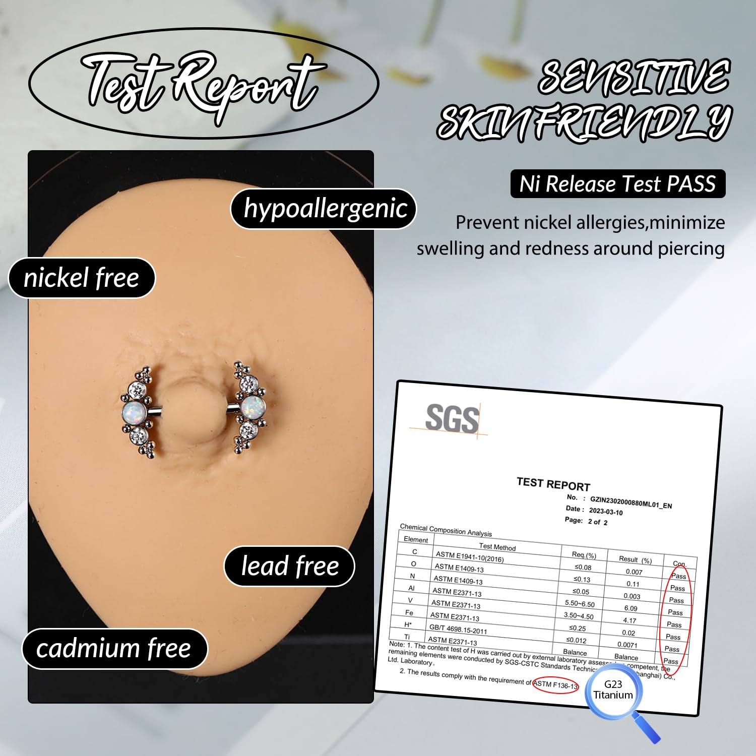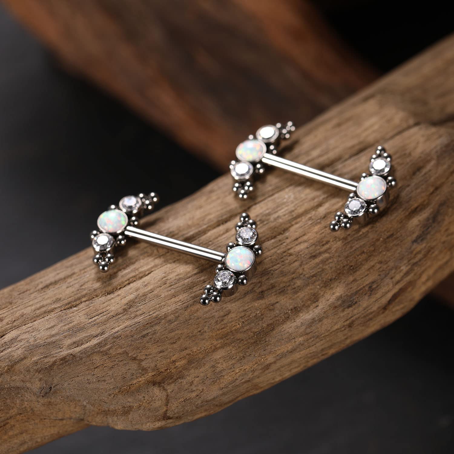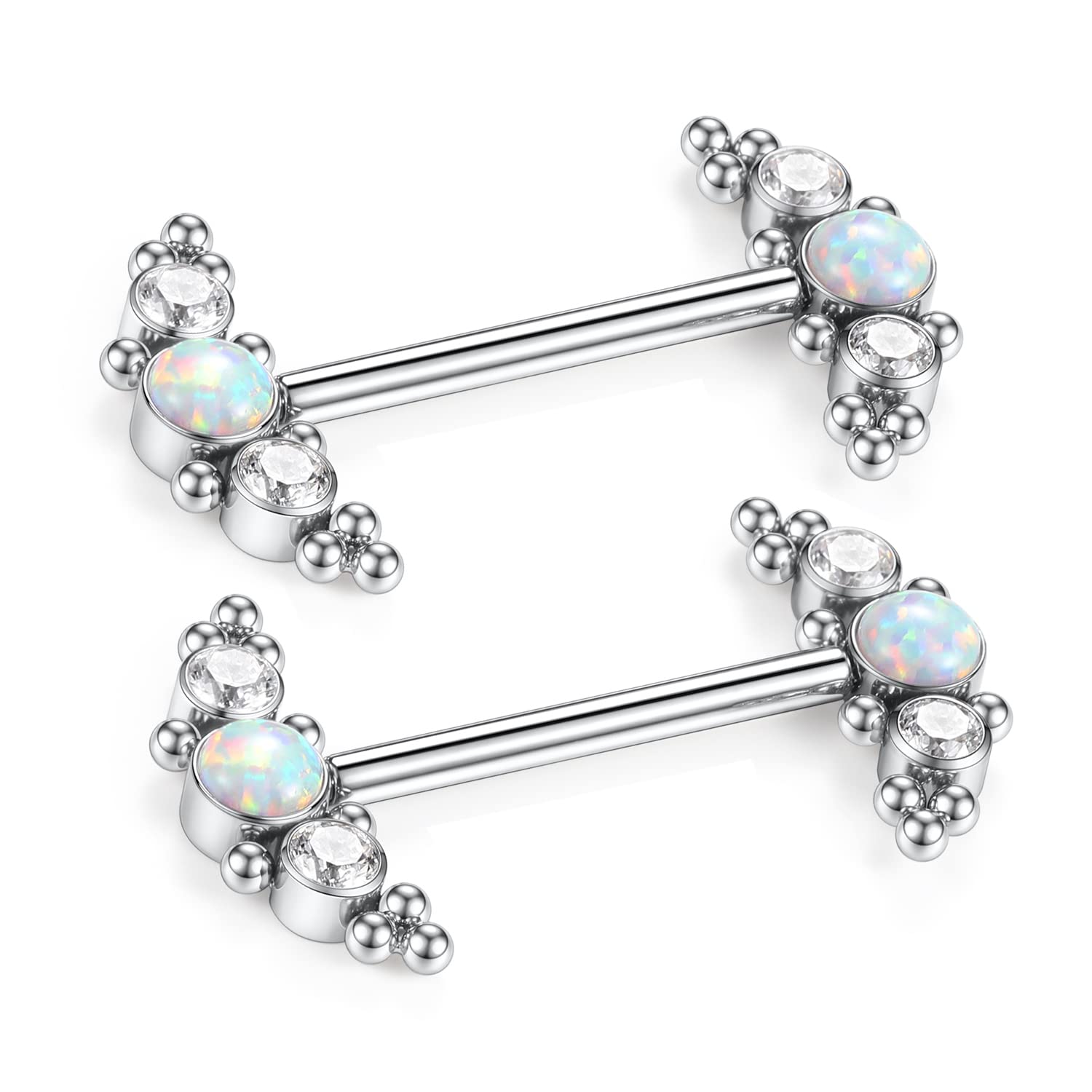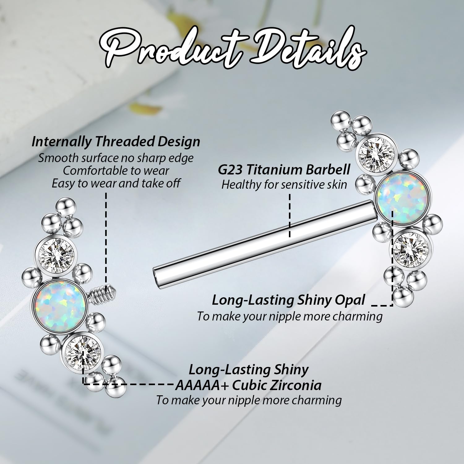 Attractive Style: The nipple ring with shiny CZ&Opal on both side,what's more it's internally threaded design,make your nipple piercing more attractive