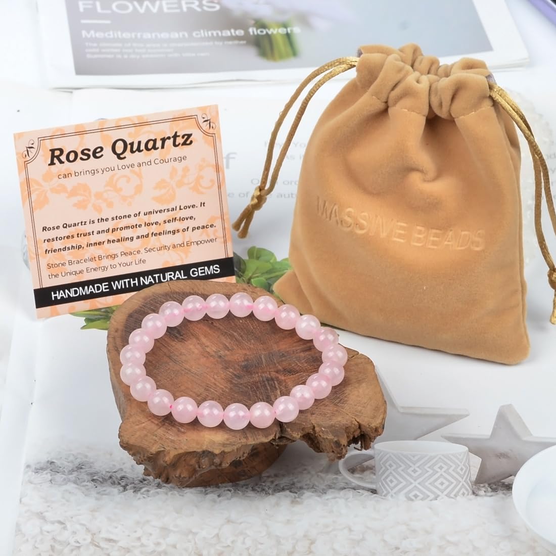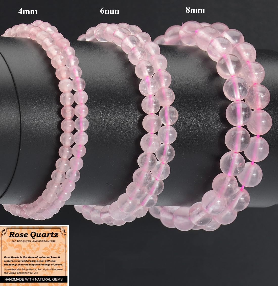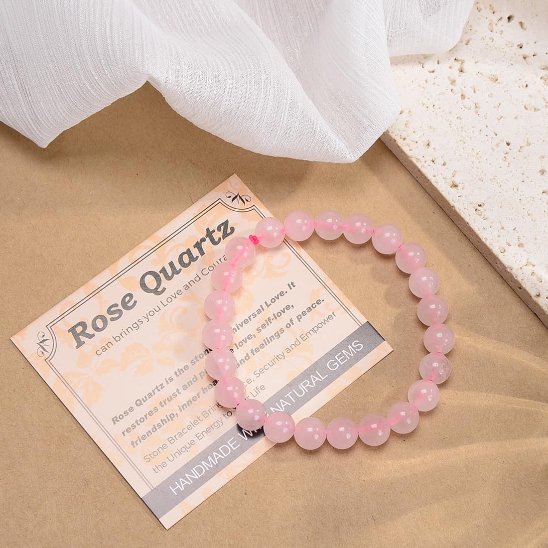 💝 [High Quality Materials] Material: Rose Quartz; Size: 8mm(diameter); Adjustable Handmade Bracelet.