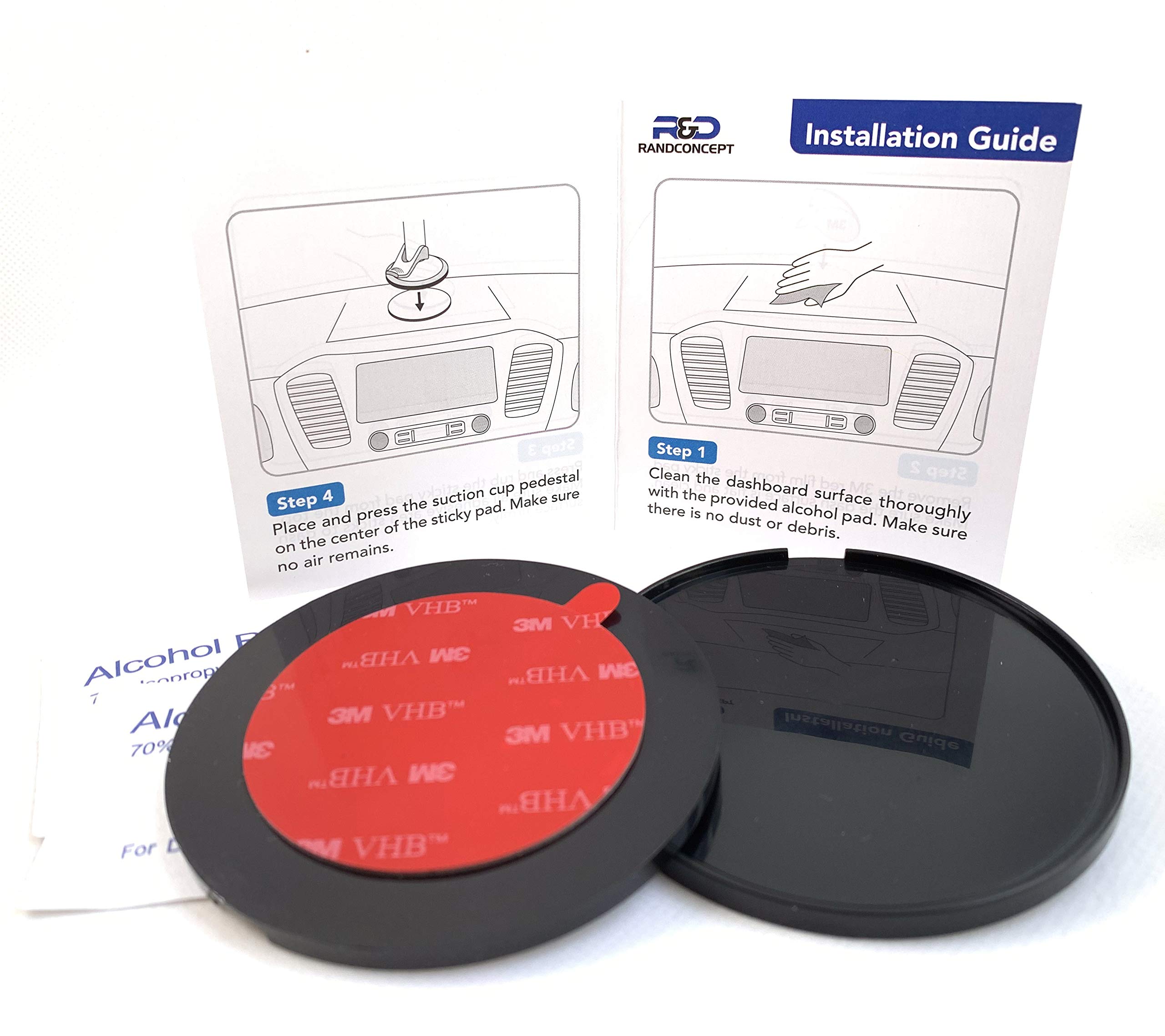 Mounting with smooth & flat surface: Thanks for PVC plate and 3M VBH adhesive, upper part PVC plate provides smooth and flat surface while bottom Sticky 3M PE foam adhesive fixed dashboard textured surface!