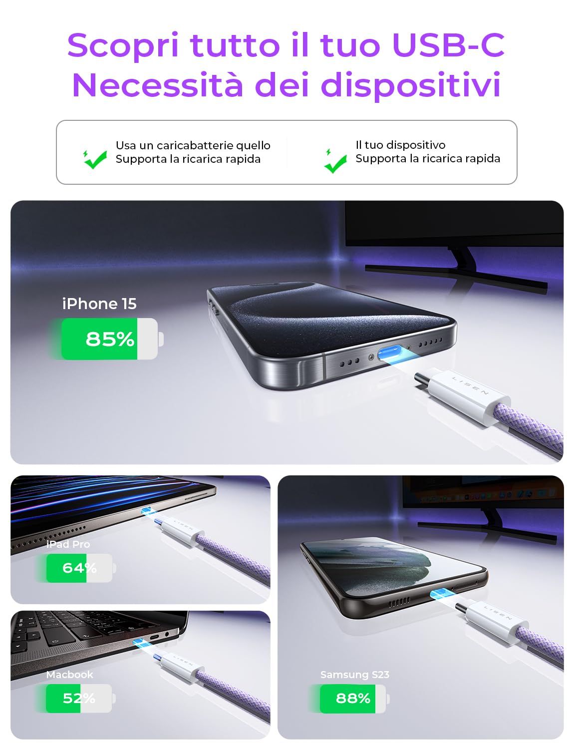 【What you get】LISEN USB C to USB C Cable (5-Pack).