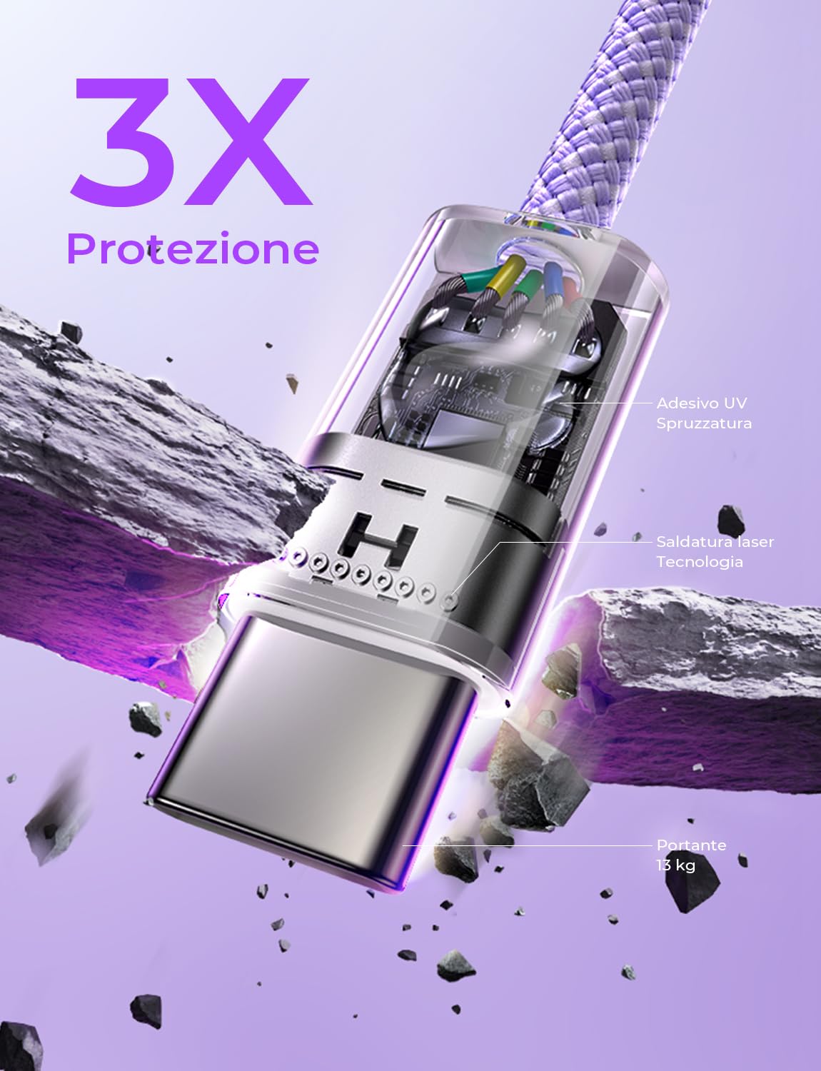 【Triple Protection USB C Port】USB to USB C Cable has electronic safety certifications in compliance with the appropriate standards, built-in laser welding technology, which ensures that the metal part is not broken. The copper core section is reinforced with UV adhesive to prevent solder joints from falling off. The USB-C port passes the load-bearing 13 kg test, ensuring a longer service life and preventing breakage.
