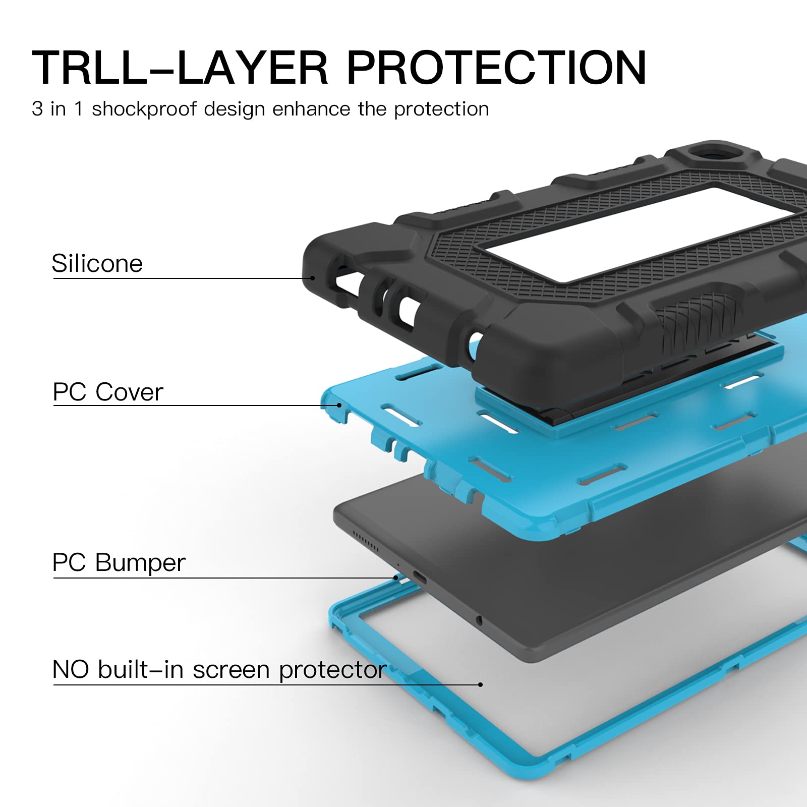 【Unique Design】 The Rantice's exclusive shock absorbing bumps and raised design on each cutouts greatly reduce the damage of the tablet from collision, drop, and accident.