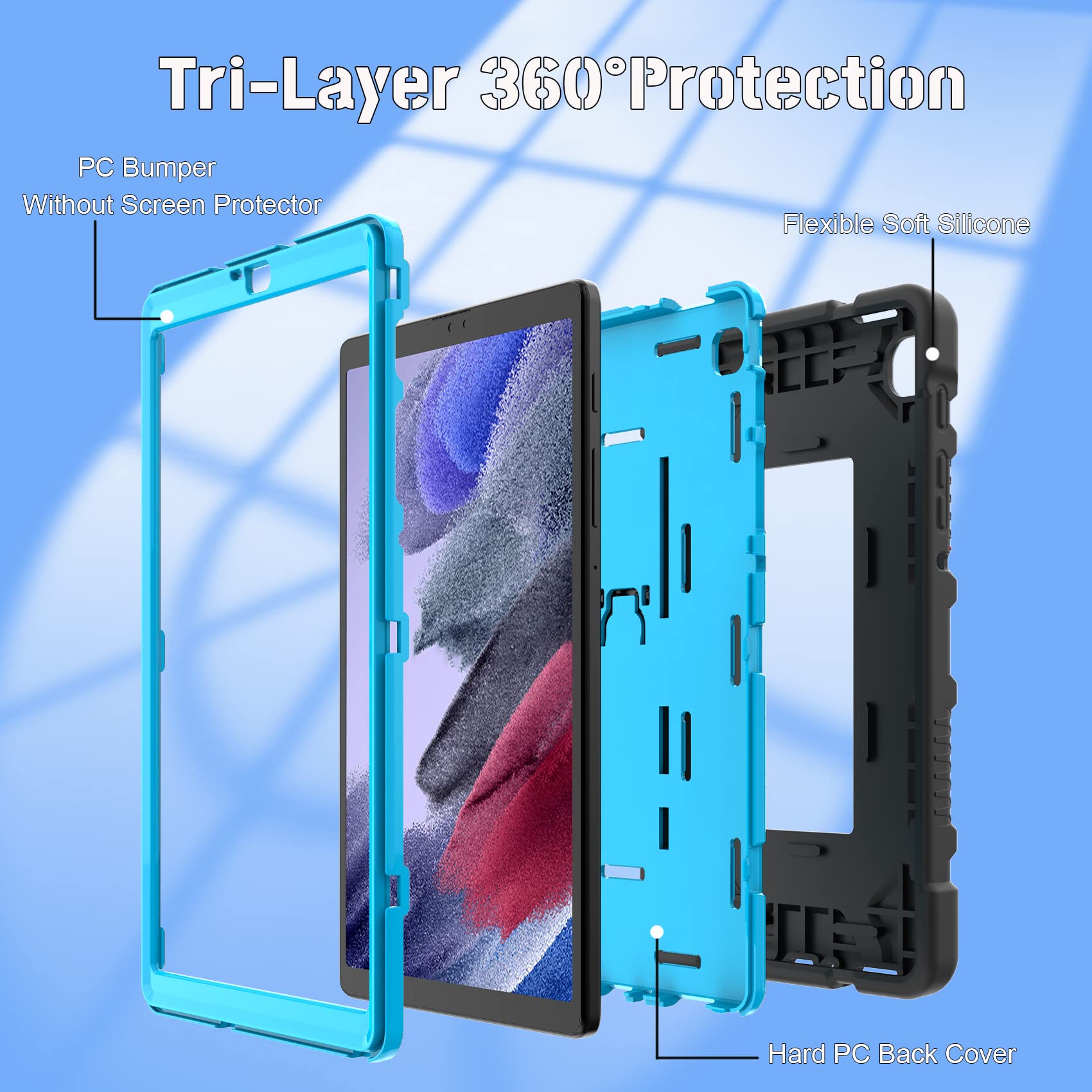 【Humanized Design】The large-area raised grid pattern has a remarkable anti-slip function, so there is no need to worry about the tablet slipping from your hands.