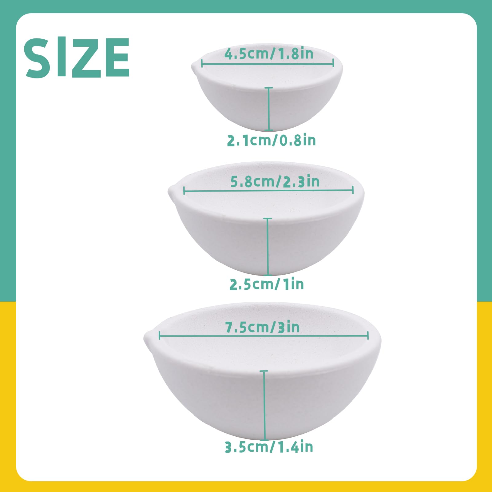 Features These crucibles are the ideal choice for professionals in various industries, including electric light, semiconductors, optical communications, military, metallurgy, building materials, chemical, mechanical, electrical, and environmental protection. Our quartz silica melting crucibles come in three different capacities - 100g, 250g, and 500g, catering to a wide range of refining needs. To maximize the effectiveness of the crucibles, we recommend heating the quartz ceramic cup slowly before use and glazing it with borax. These simple steps ensure optimal performance and longevity. Specification Material: Ceramic Color: White Size: 1.8 x 1.8 x 0.8 inch, 2.3 x 2.3 x 1 inch, 3 x 3x 1.4 inch Package Include: 3 x Quartz Silica Melting Crucible