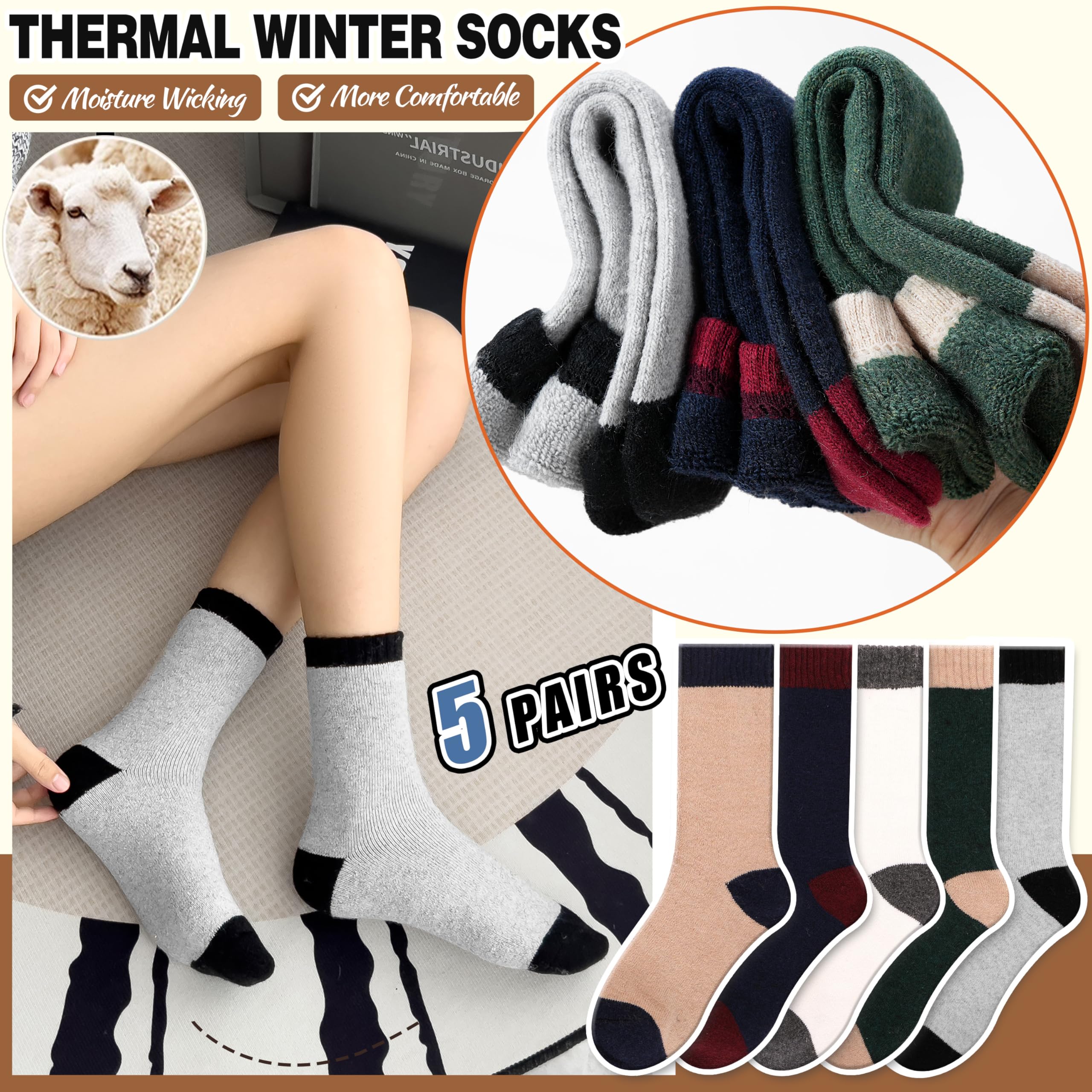 HIGH QUALITY : EBMORE fashion women wool socks are blend of 55% Wool, 25% Cotton, 15% Polyester, 5% Spandex. It’s a premium High Quality merino wool socks, so the socks is very soft, heavy but breathable, cozy, fuzzy inner lining and will keep your feet comfortable and warm.