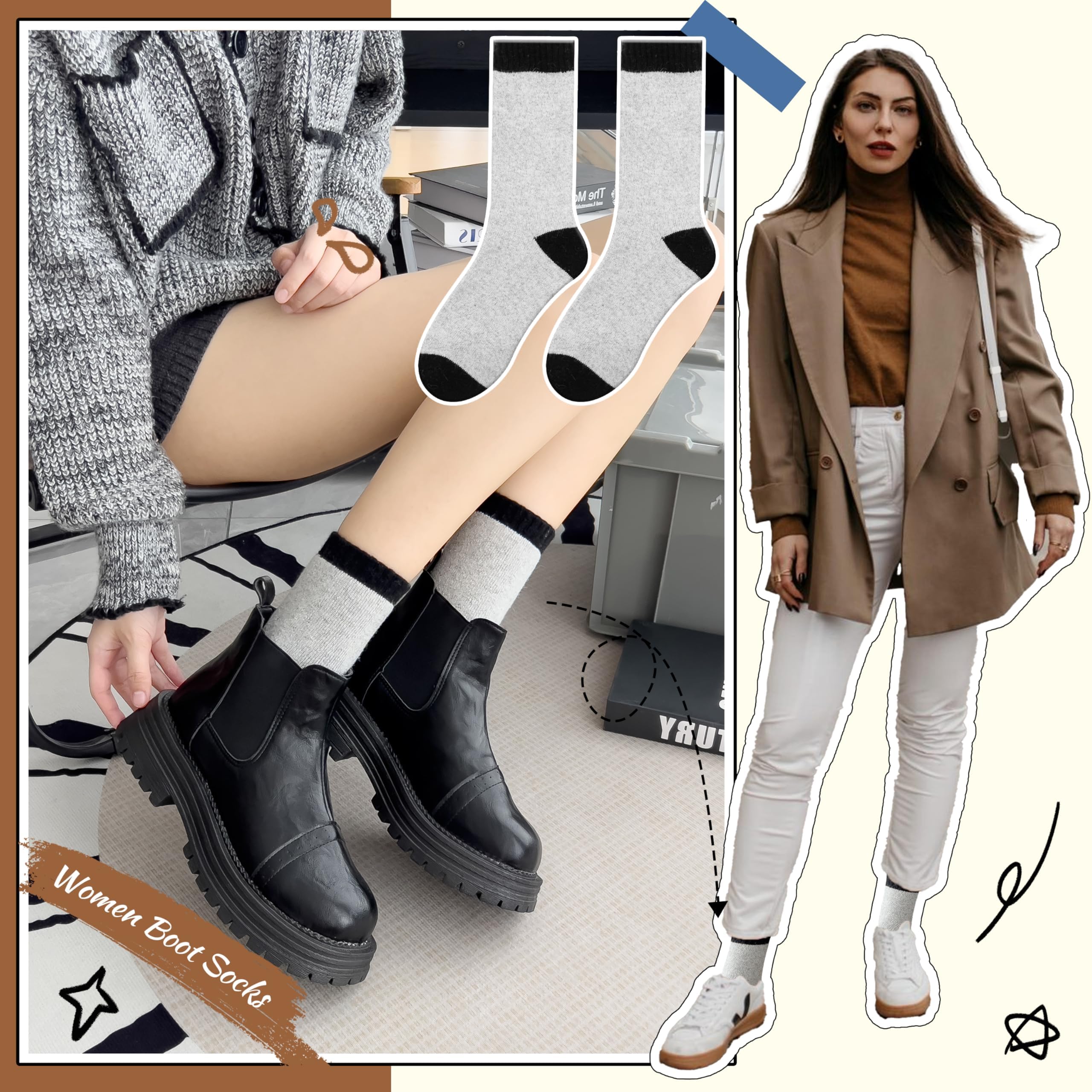 BREATHABLE & COMFORTABLE : The materials of this stylish socks for women and teen girls is very soft and comfortable, Fuzzy inner design will keep your feet warm and the breathable and soft fabric will keep your feet feel comfortable all the day.