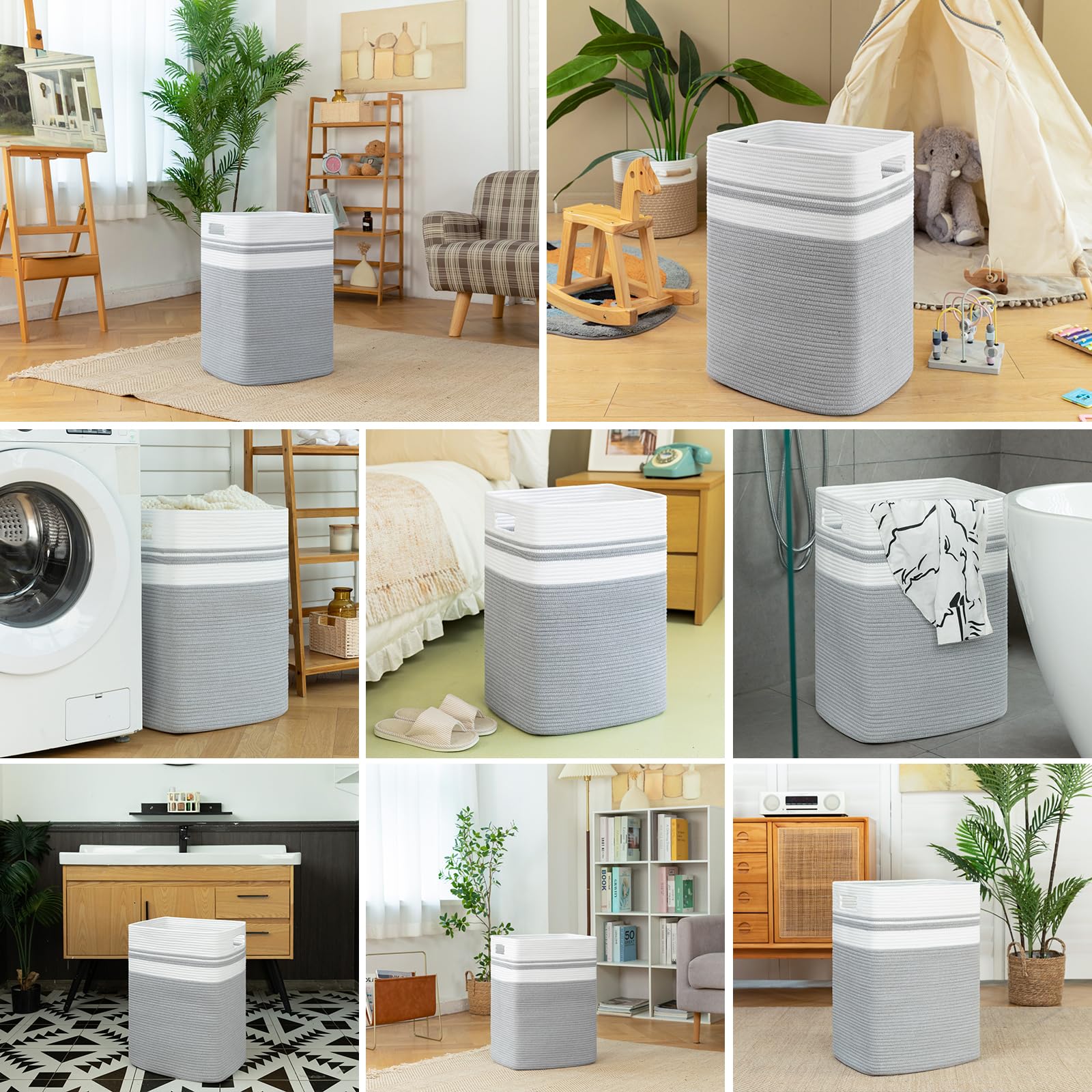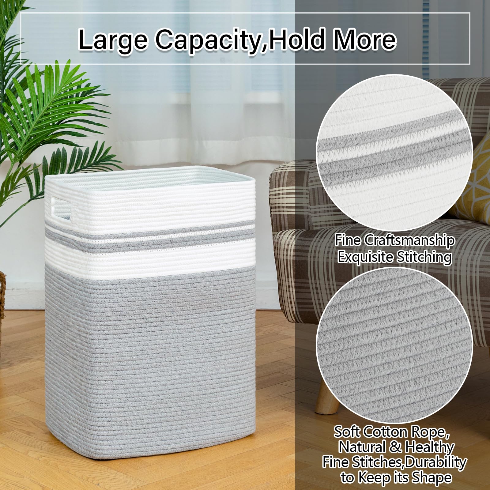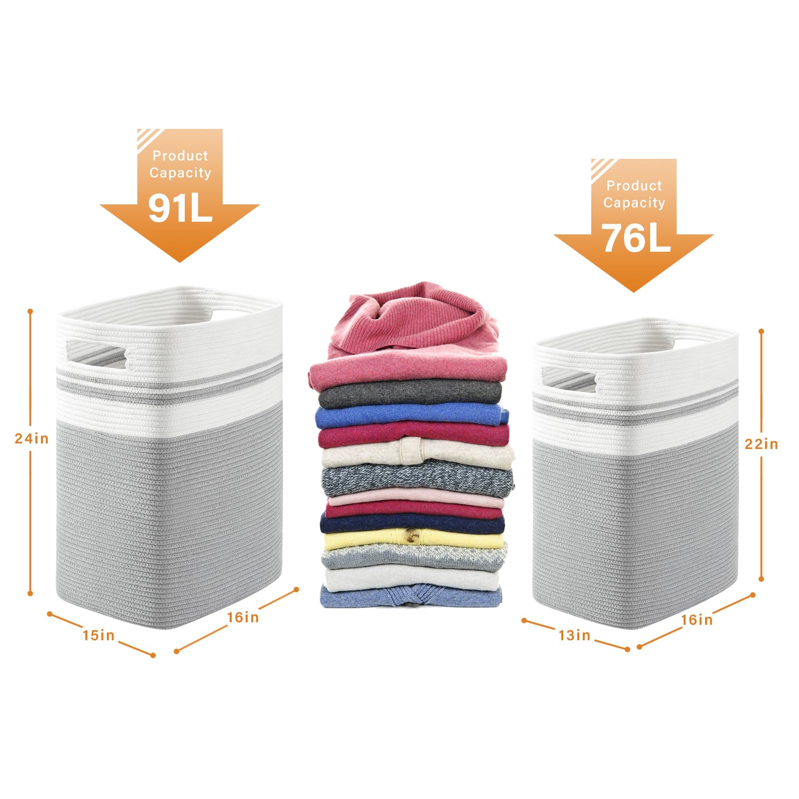 Oversized Size Blanket Basket : The overall size of the storage basket is 15.7x15x23.62 inches.This large basket can easily accommodate a family's change of clothes and keep room clean & tidy.This elegant woven storage basket bring great convenience in life to store bulky items like blankets,toys,comforters,duvets,throw pillows,cushions,stuffed animals,winter clothing etc