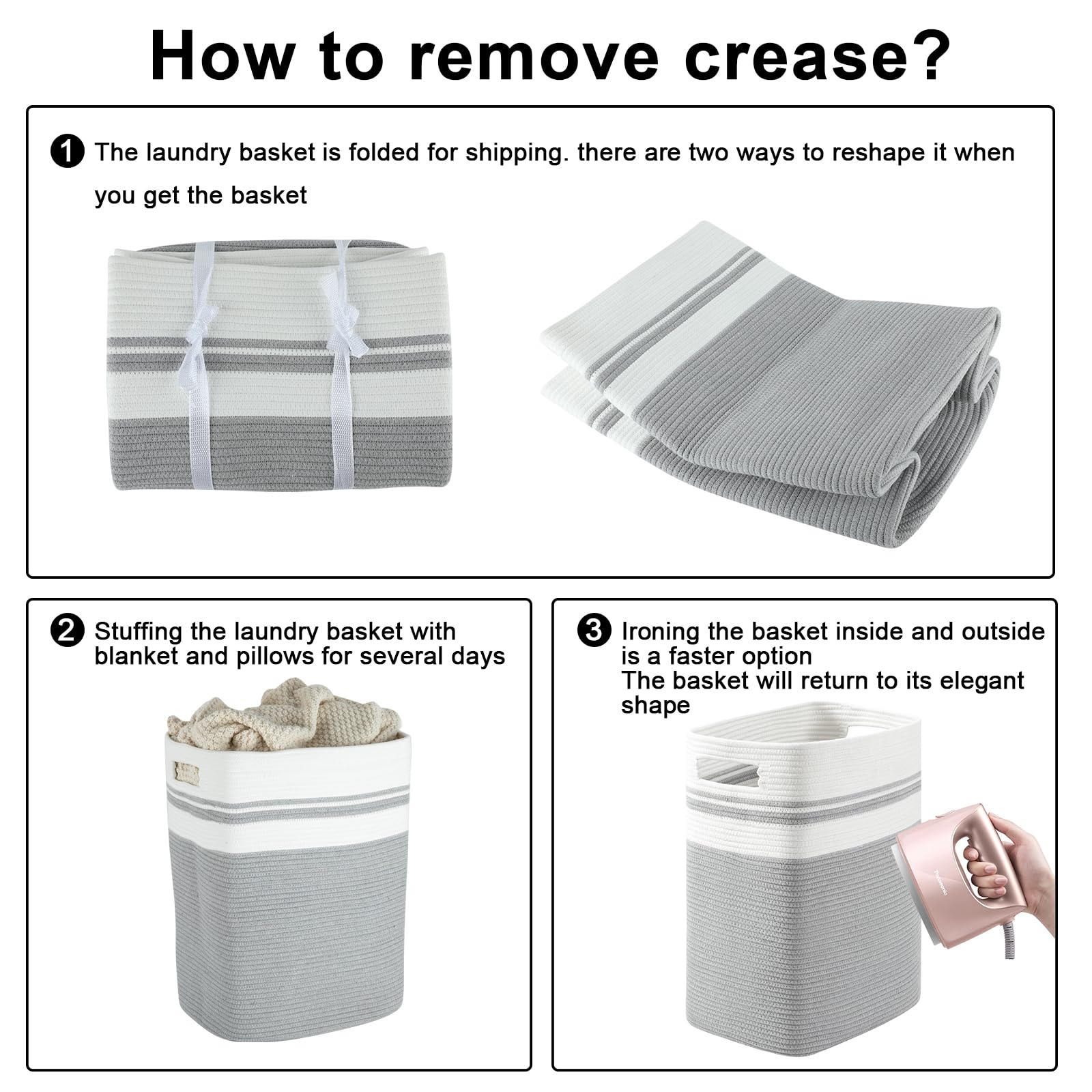 Satisfaction & Note : We have invested a lot of love and effort in designing and manufacturing the best laundry baskets for our customers, so we support our quality and craftsmanship. If you are not satisfied for any reason, please let us know and we will replace your shopping basket for free or a full . NOTE: The laundry hamper is folded, but it will turn back to its elegant shape quickly if you fill it with some towels or blankets, and iron is great idea to remove the creases