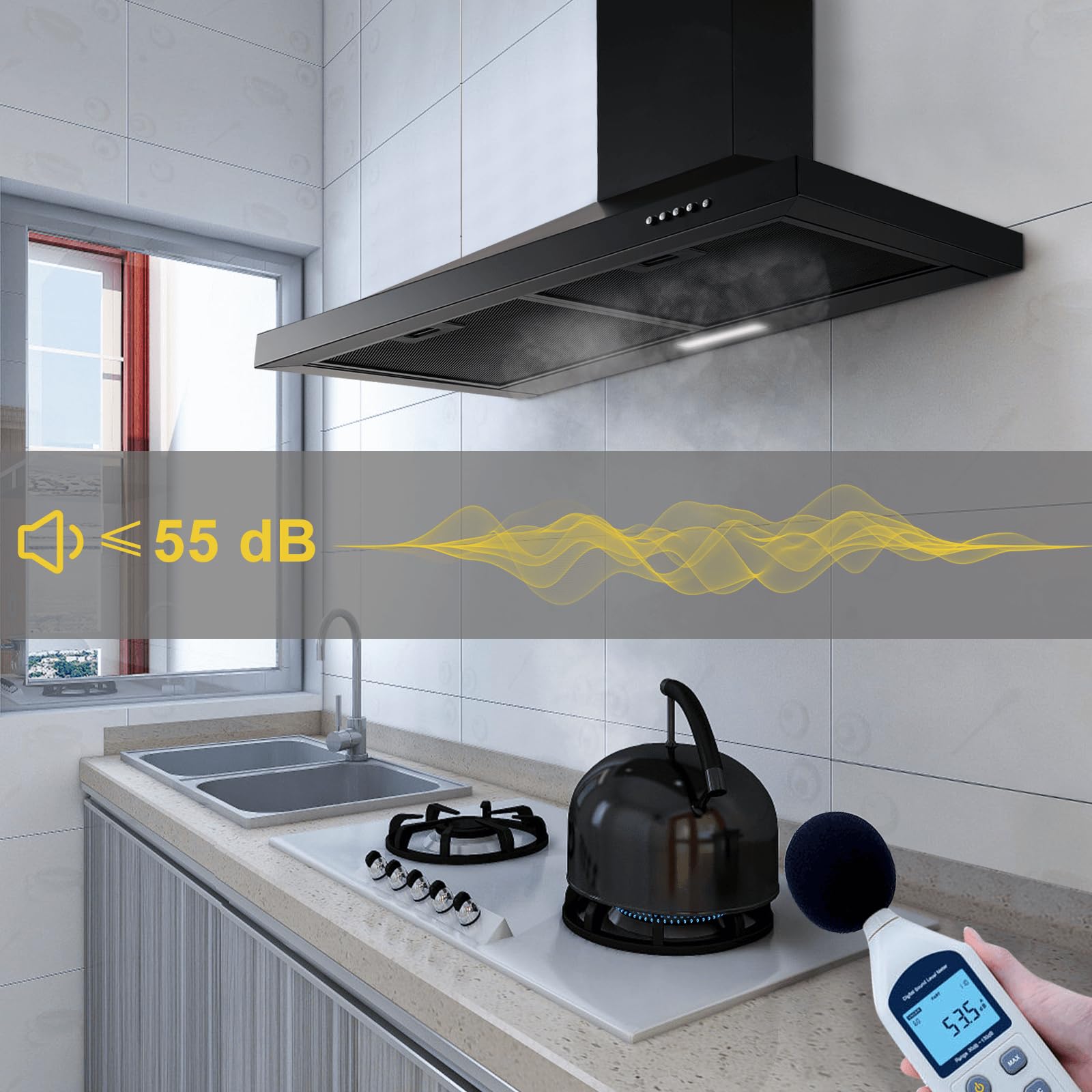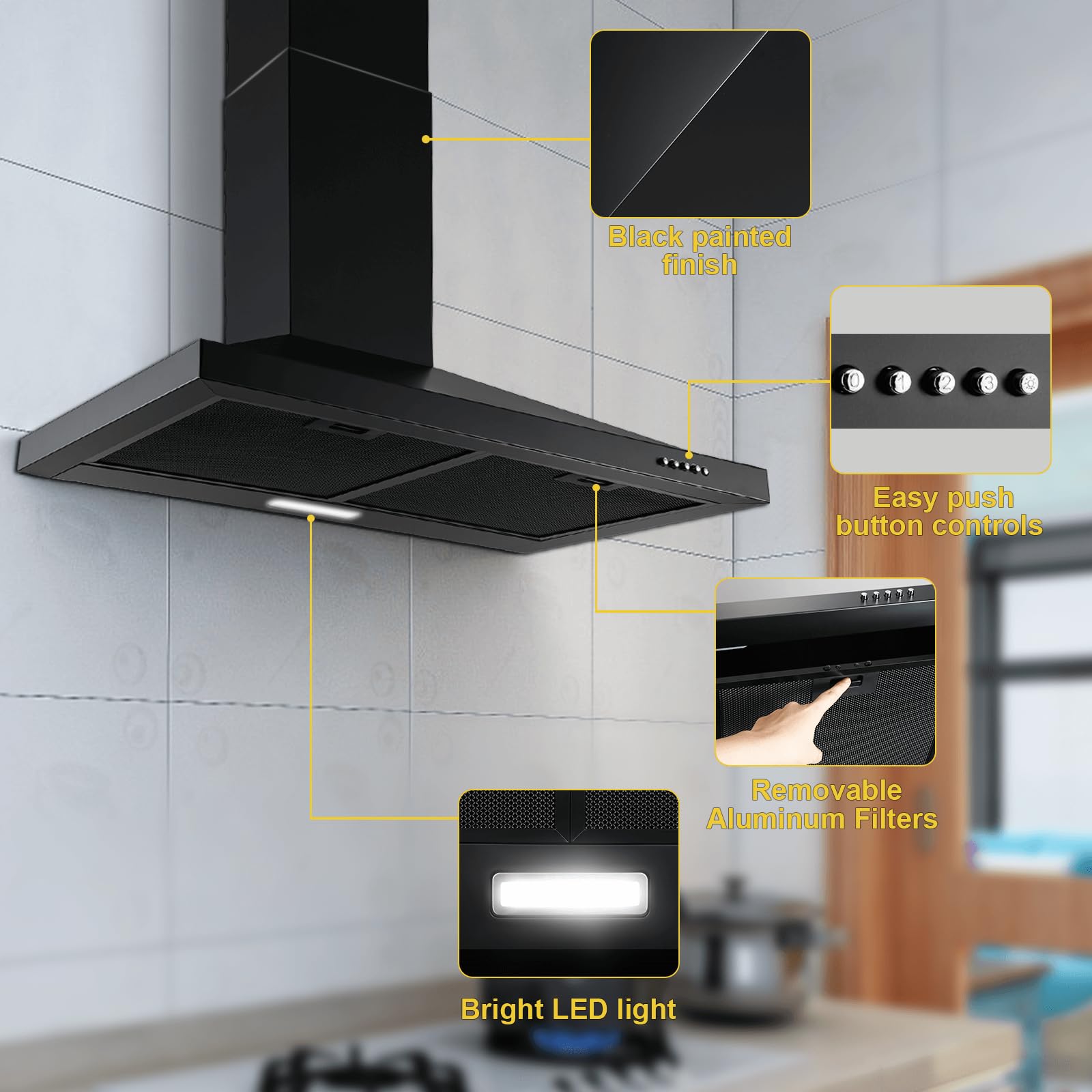【SNDOAS Range Hood Black GD1775BPA】:Made of Premium 430 grade stainless steel, black painted finish body + black aluminum grease filters, high end kitchen hood, perfect for modern european kitchen style. 5-layers filters are removable, pretty easy to clean up.