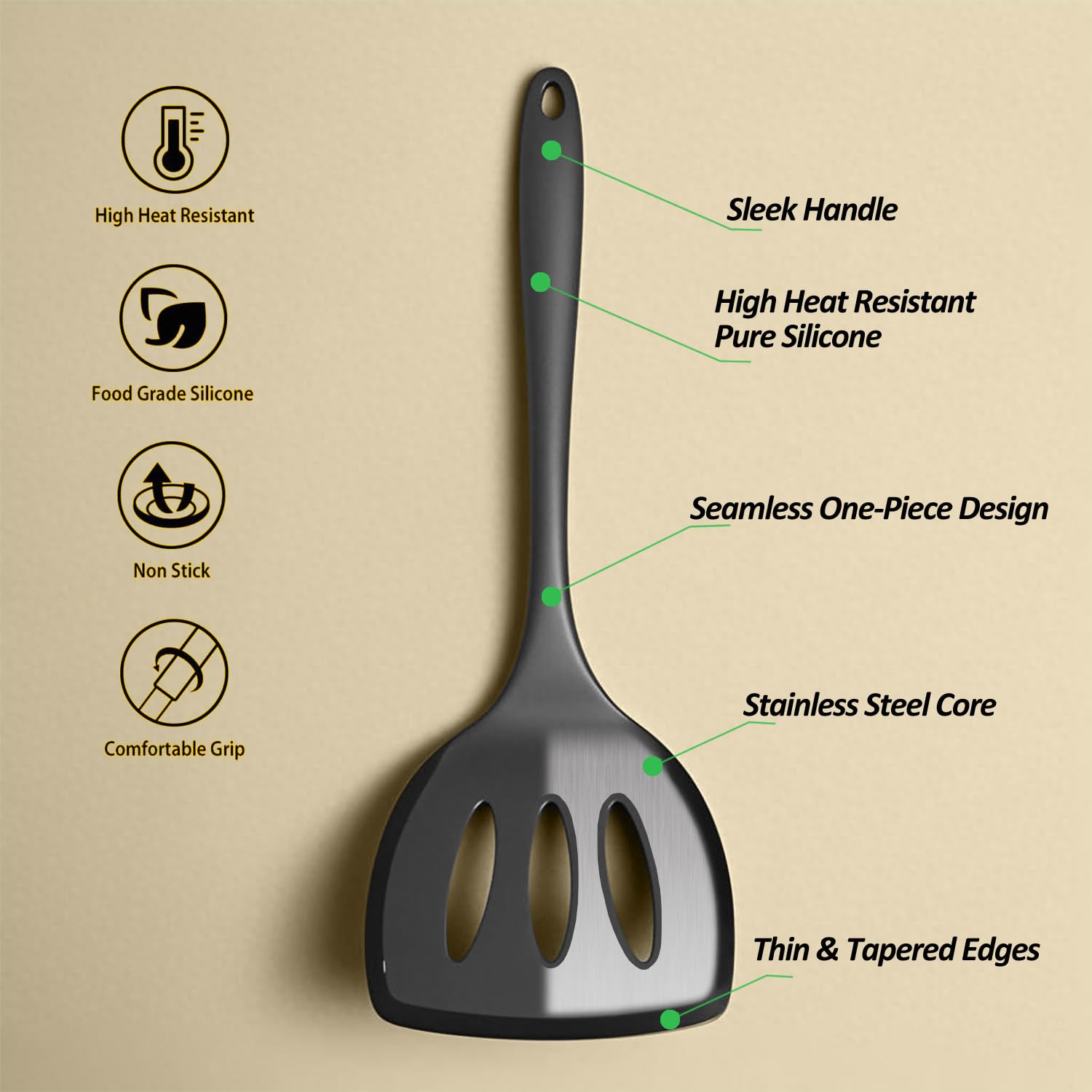SAFE & HEALTHY: This silicone spatula turner is made of 100 percent food grade silicone, will not retain odors or colors and is resistant to staining, ensuring the health of your family members.
