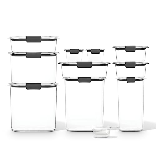 Made with Rubbermaid Brilliance's signature 360-degree crystal-clear Tritan plastic, these pantry storage containers are perfect for keeping flour, sugar, pasta, and other cooking essentials fresh. The shatter-resistant 10-piece pantry container set comes with airtight leakproof lids that help prevent kitchen messes. Stackable and space-efficient, they blend seamlessly into organized cabinets and are beautiful enough to display them on the kitchen counter for quick access. This collection of food storage containers come with a variety of sizes for holding different ingredients, plus one convenient 1/2-cup scoop. The containers are all BPA-free and easy to clean—simply pop the base and lid into the dishwasher before you refill with more pantry staples.
