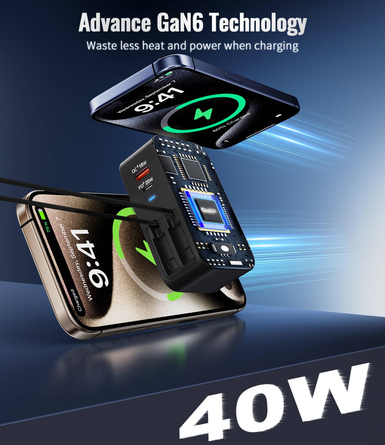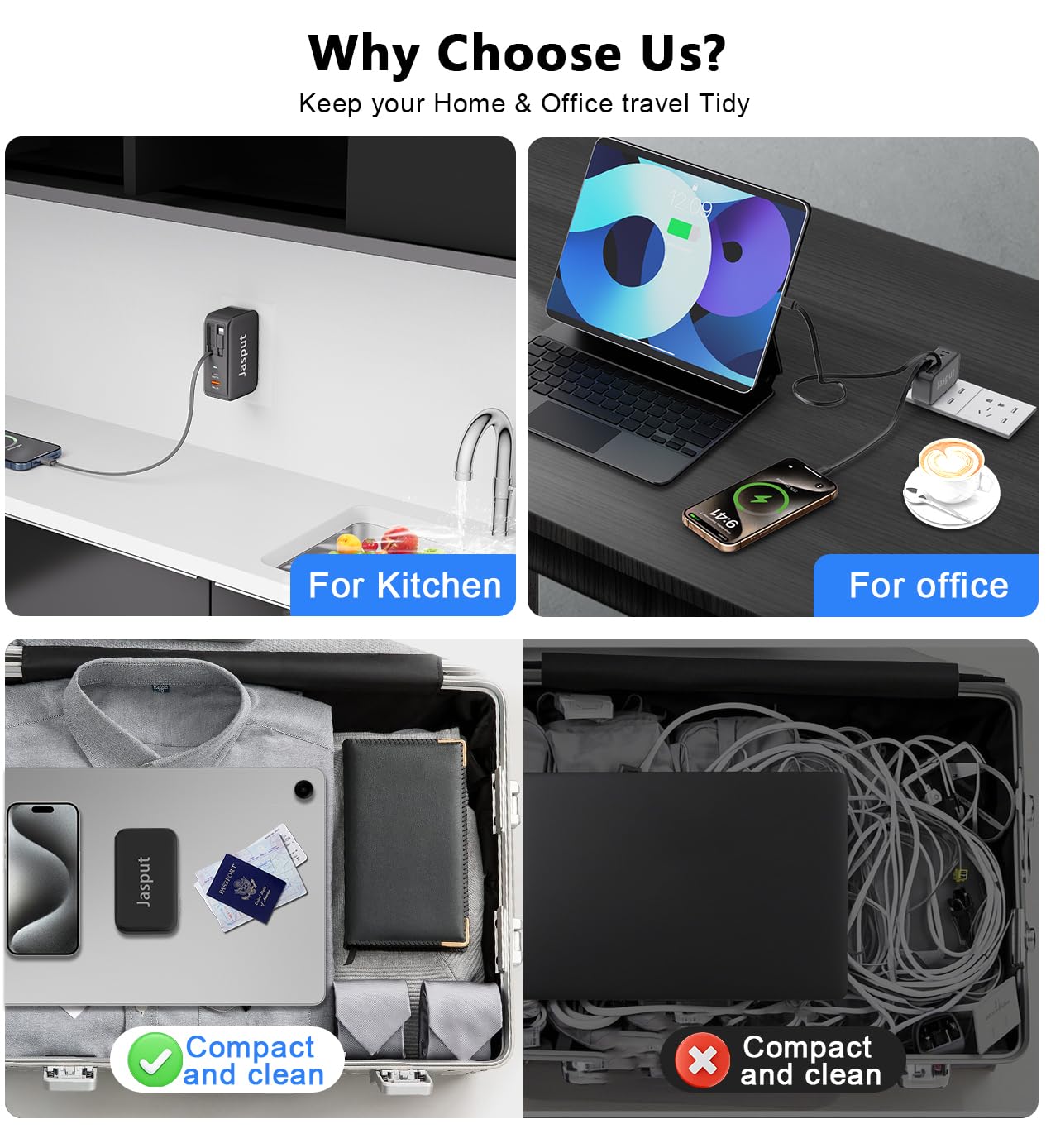 【Revolutionary GaN6 Technology】Slow charging ? overheating? The retractable charger usb c adopt high quality chips and advanced GaN6 technology materials. It generates less heat,charges faster and more stable than traditional charger block. Built-in overcharge, overcurrent, overvoltage, short circuit and other protection to protect your equipment.
