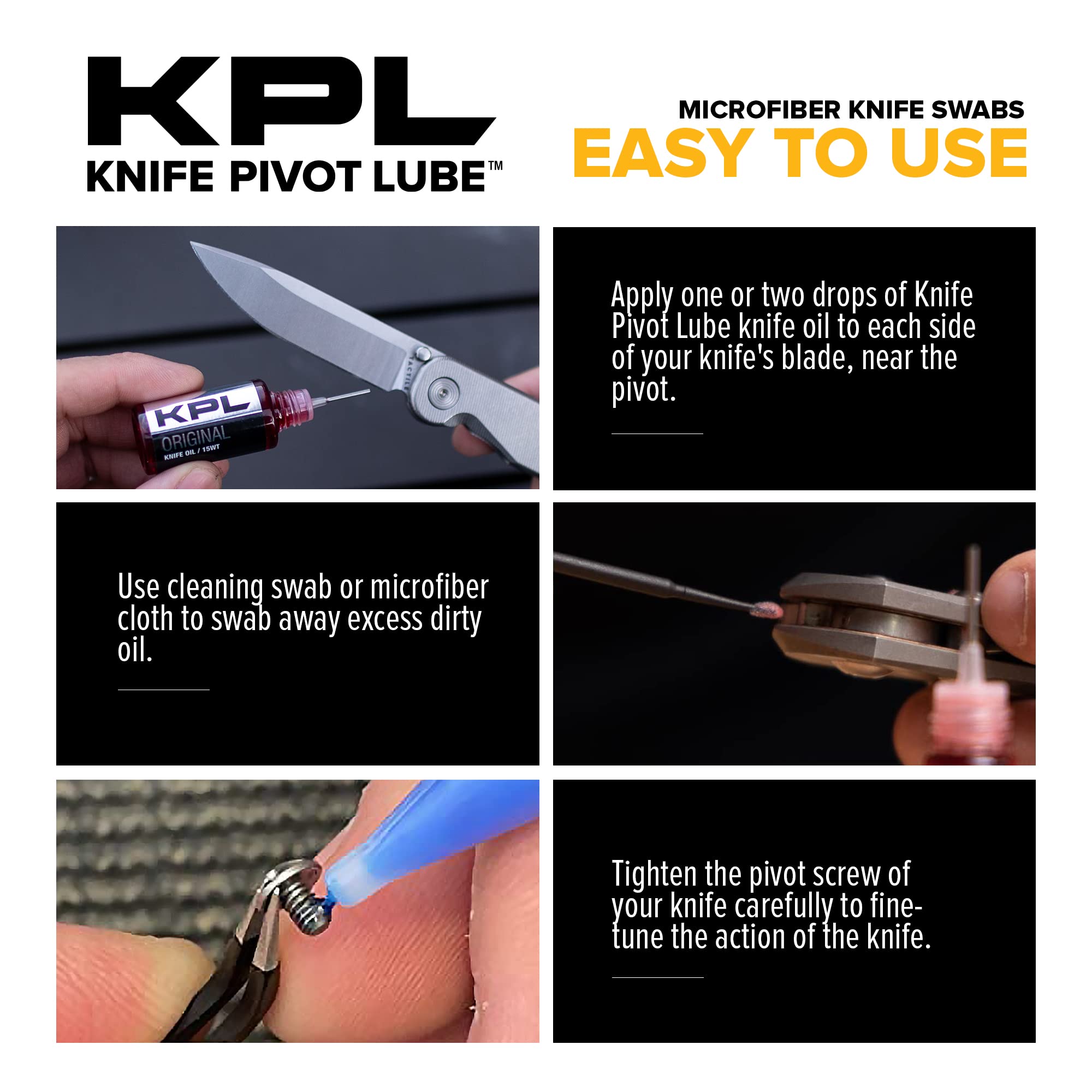 ๐ VERSATILE: These ingenious swabs work great for getting cleaning oils where you need them. They help clean all pivot areas of just about every folder. Our swabs aren't limited to knives because you can use them for flashlights, electronics, or anything with a microfiber towel.