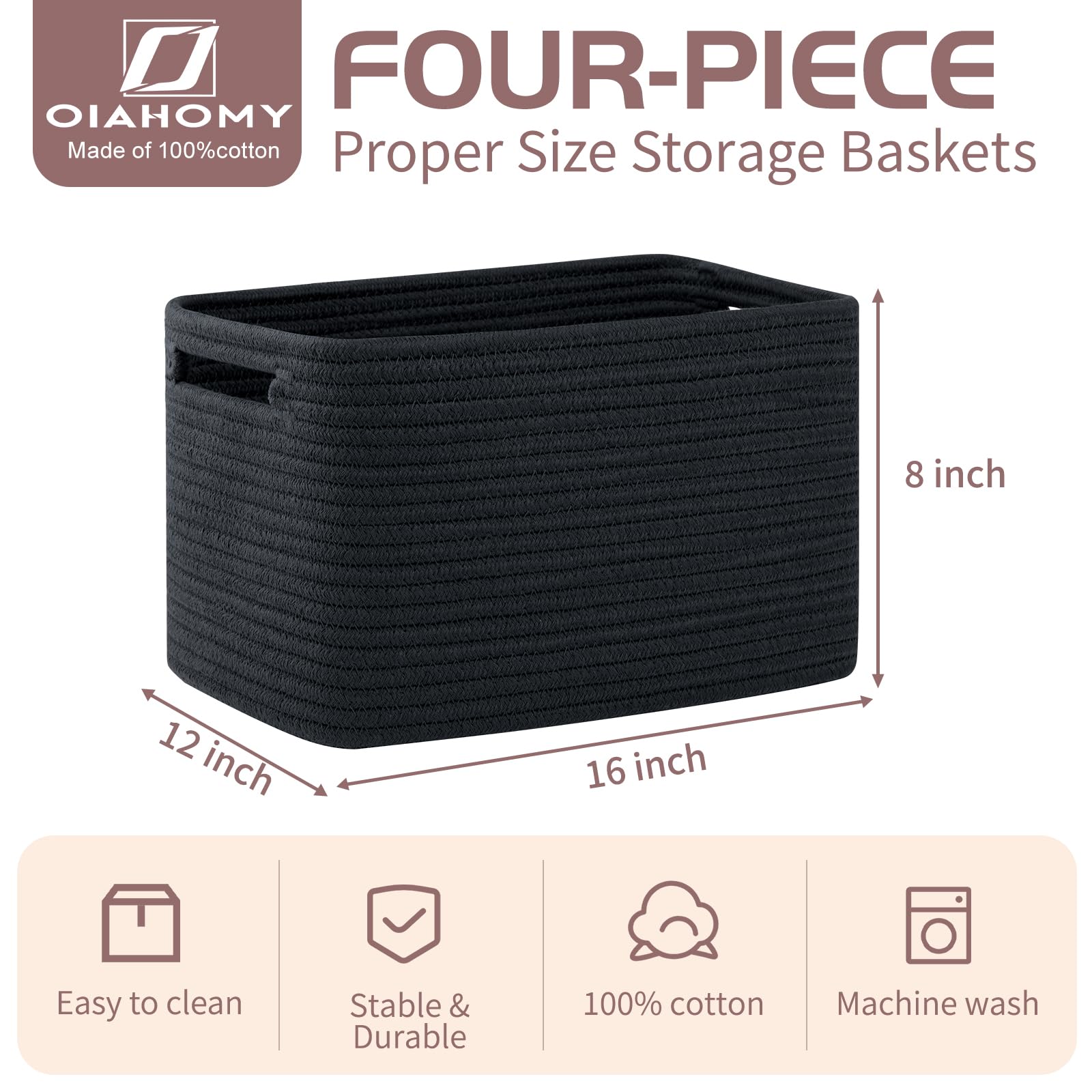 100% Cotton Rope Storage Baskets:OIAHOMY soft woven storage baskets are made of high-quality natural cotton, chemical free and safe for kids and pets. It will not scratch your furniture and floor, durable and firm
