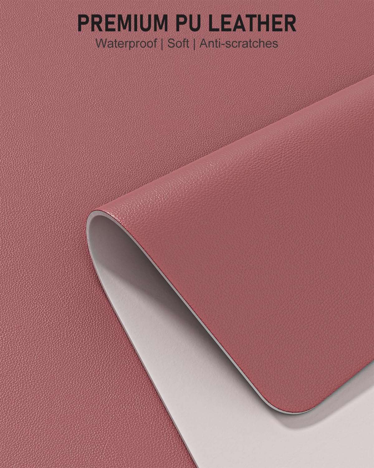 Waterproof and Easy to Clean: PU leather surface is ultra waterproof and oilproof, desk mat protects your desktop from spilled water, coffee, ink and other liquids. Easy to clean, just gently wipe with tissues or wet cloth