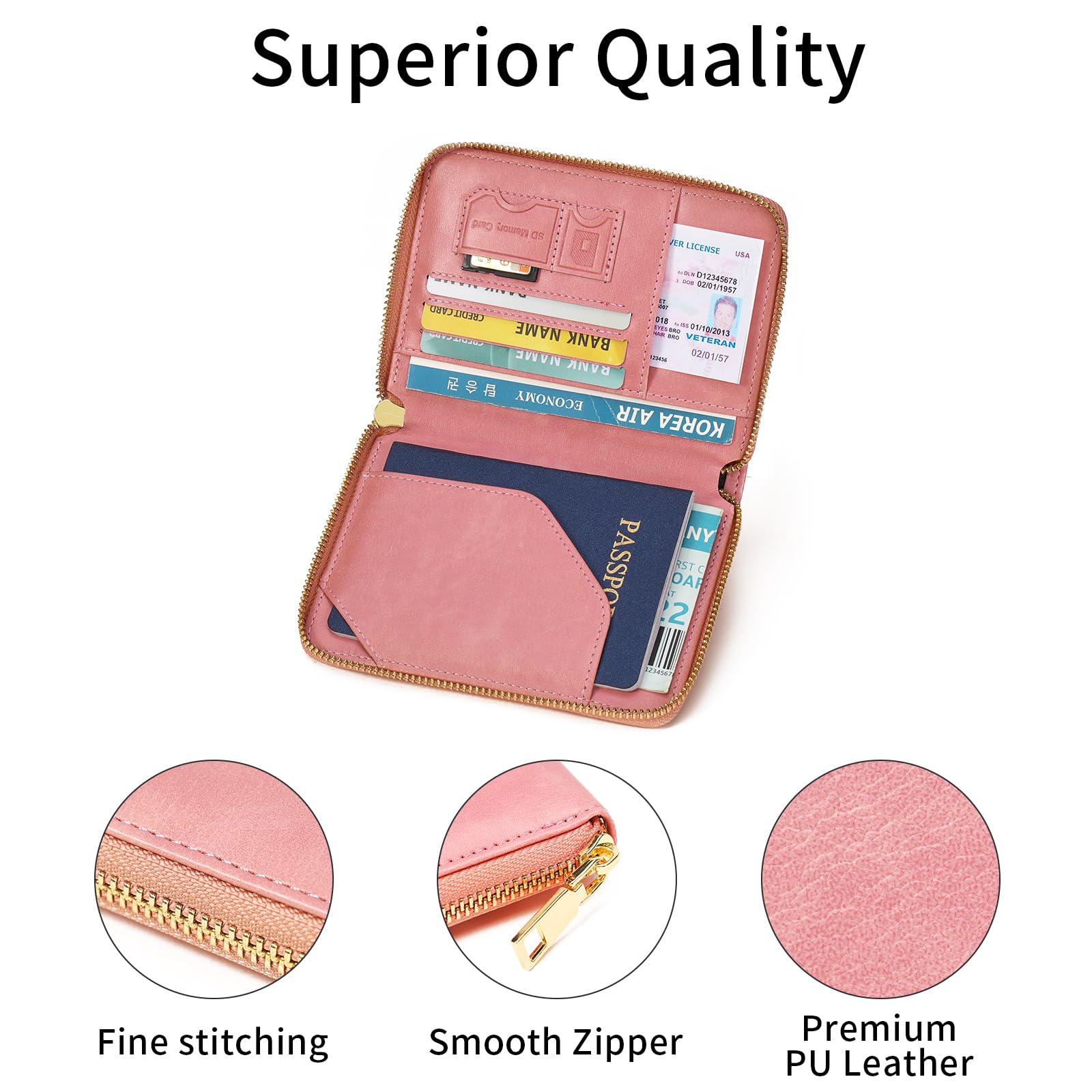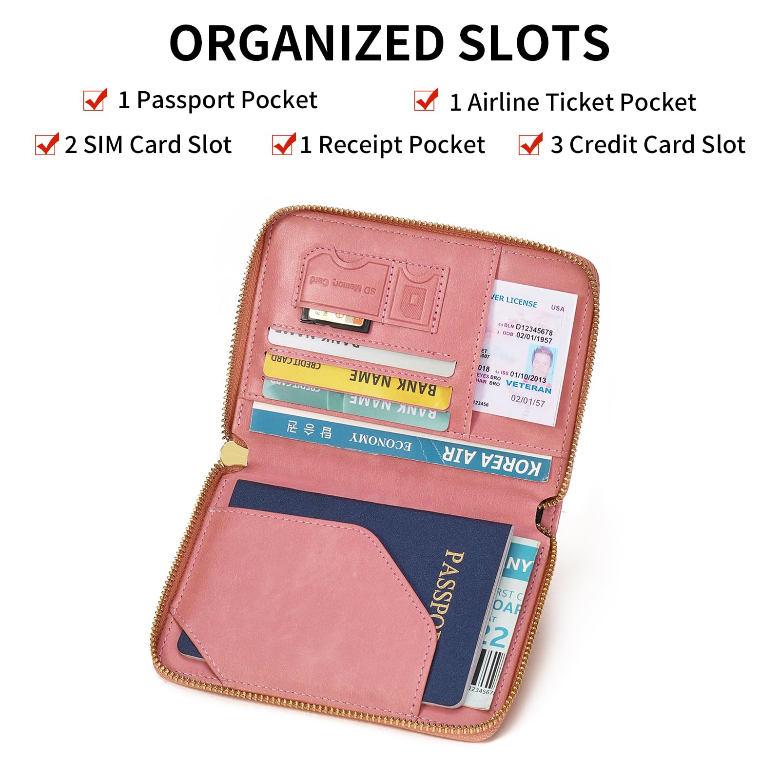 Multi Functional Passport Wallet:This passport holder is designed with passport slots, credit cards slots, boarding pass slot, SIM cards slots, and other essential travel documents. The zip pocket keeps your information secure,making it the perfect travel organizer for trips