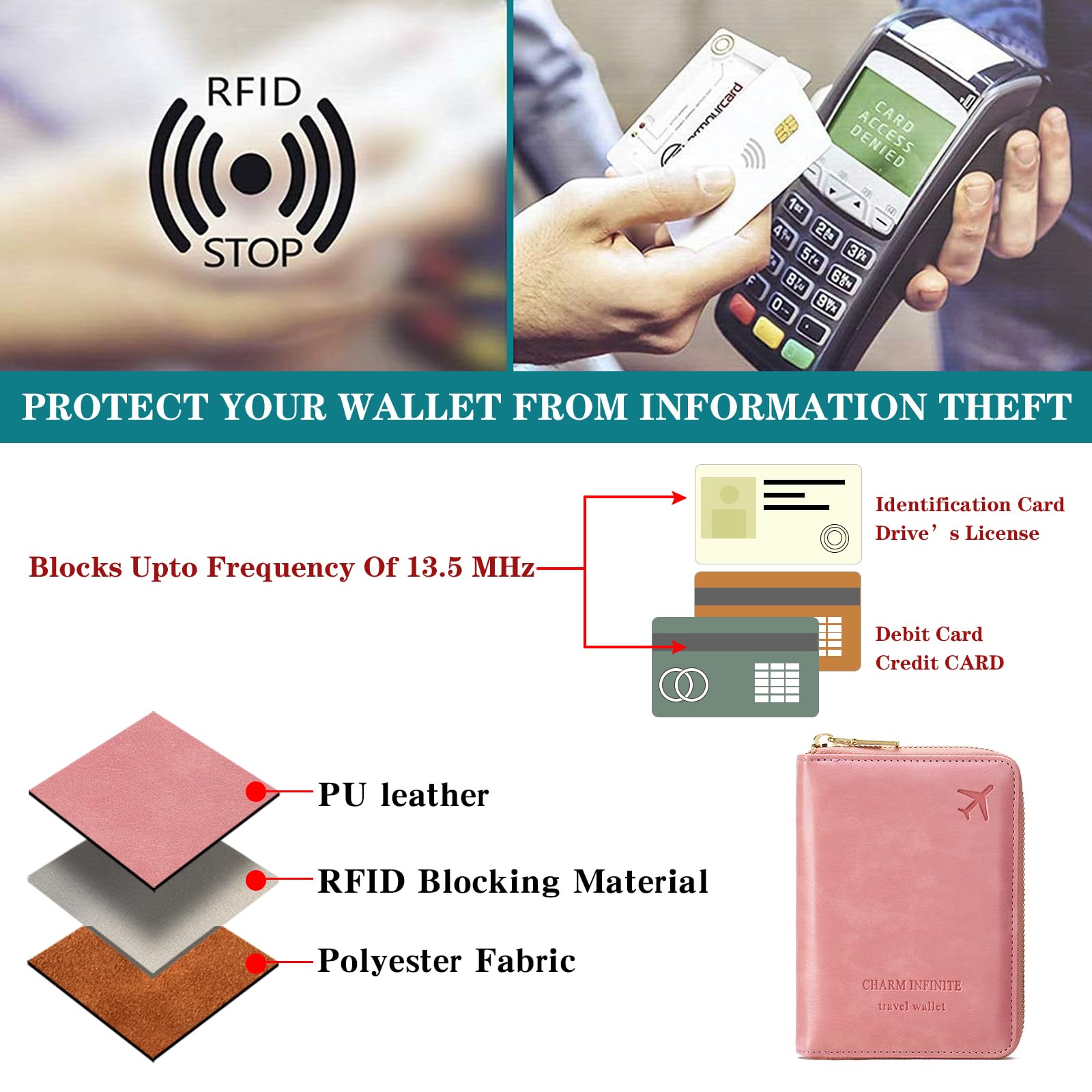 RFID Security: The leather passport holder rfid blocking has a special material to block RFID signals so that the passport organizer can protect your personal information in your passport and credit cards from unauthorized scans. RFID blocking shielding material of the passport holder men women is used to prevent thieves from swiping your credit card to steal your personal information in airports or crowded places