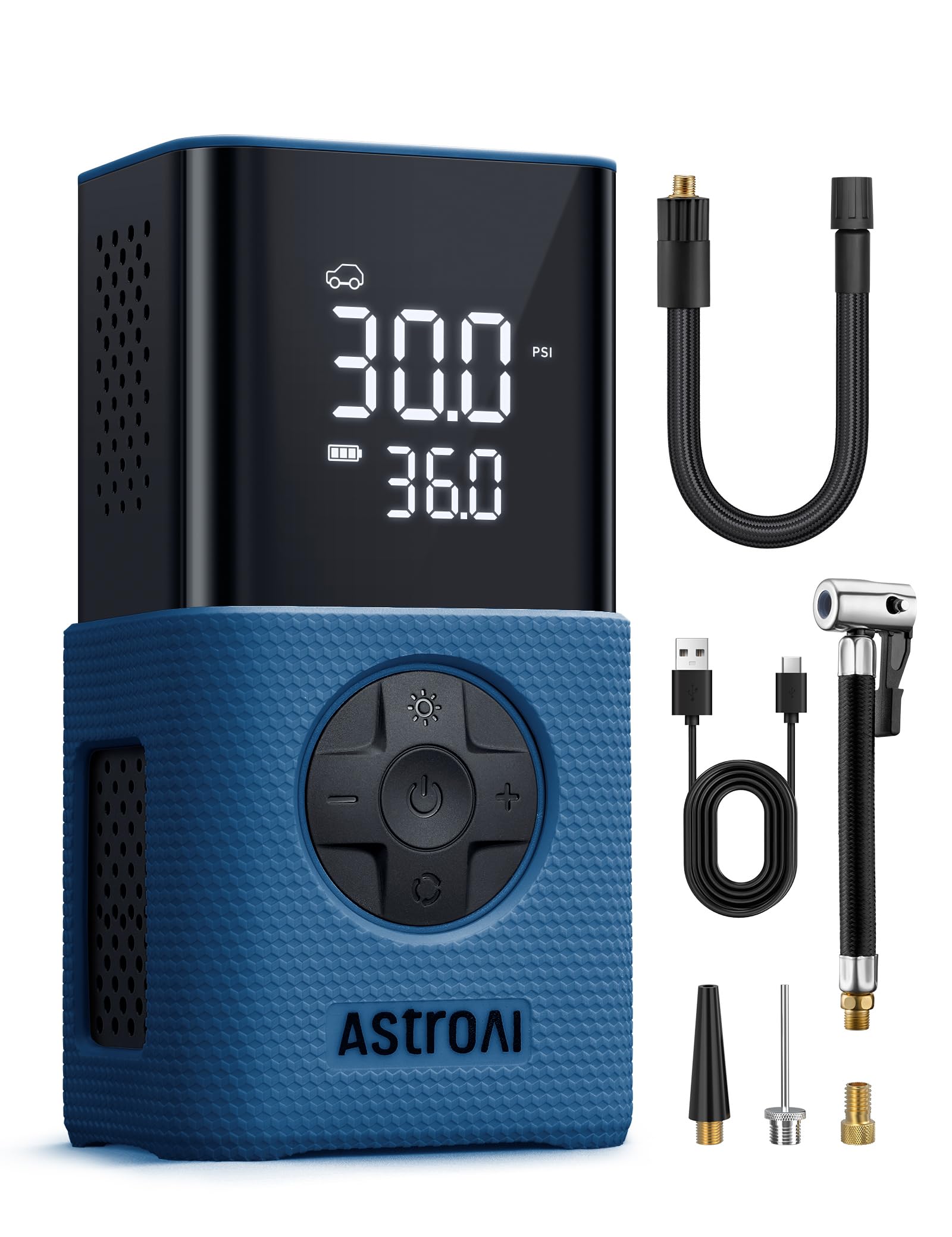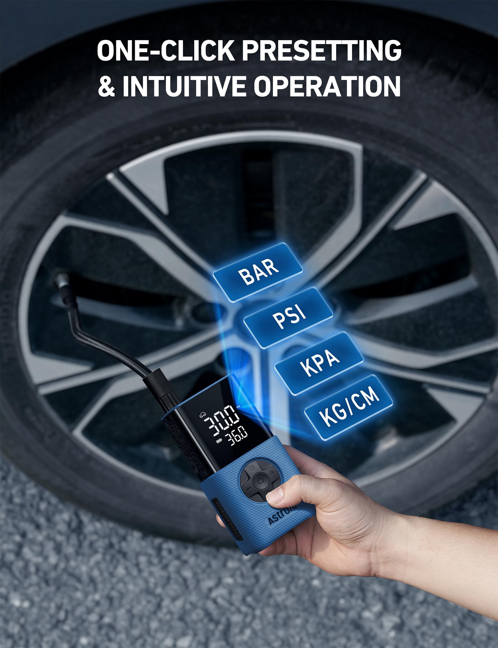 EASY TO USE: You can choose 5 smart modes (car, motorcycle, bicycle, ball, and custom) and 4 pressure units as needed (PSI, Bar, kPa, kg/cm²) based on your various inflation needs. The custom mode allows you to freely preset the desired pressure value (3-150PSI) based on the inflatables you want to inflate. The exterior silicone sleeve protects against accidental drops, prolonging the tool’s service life.
