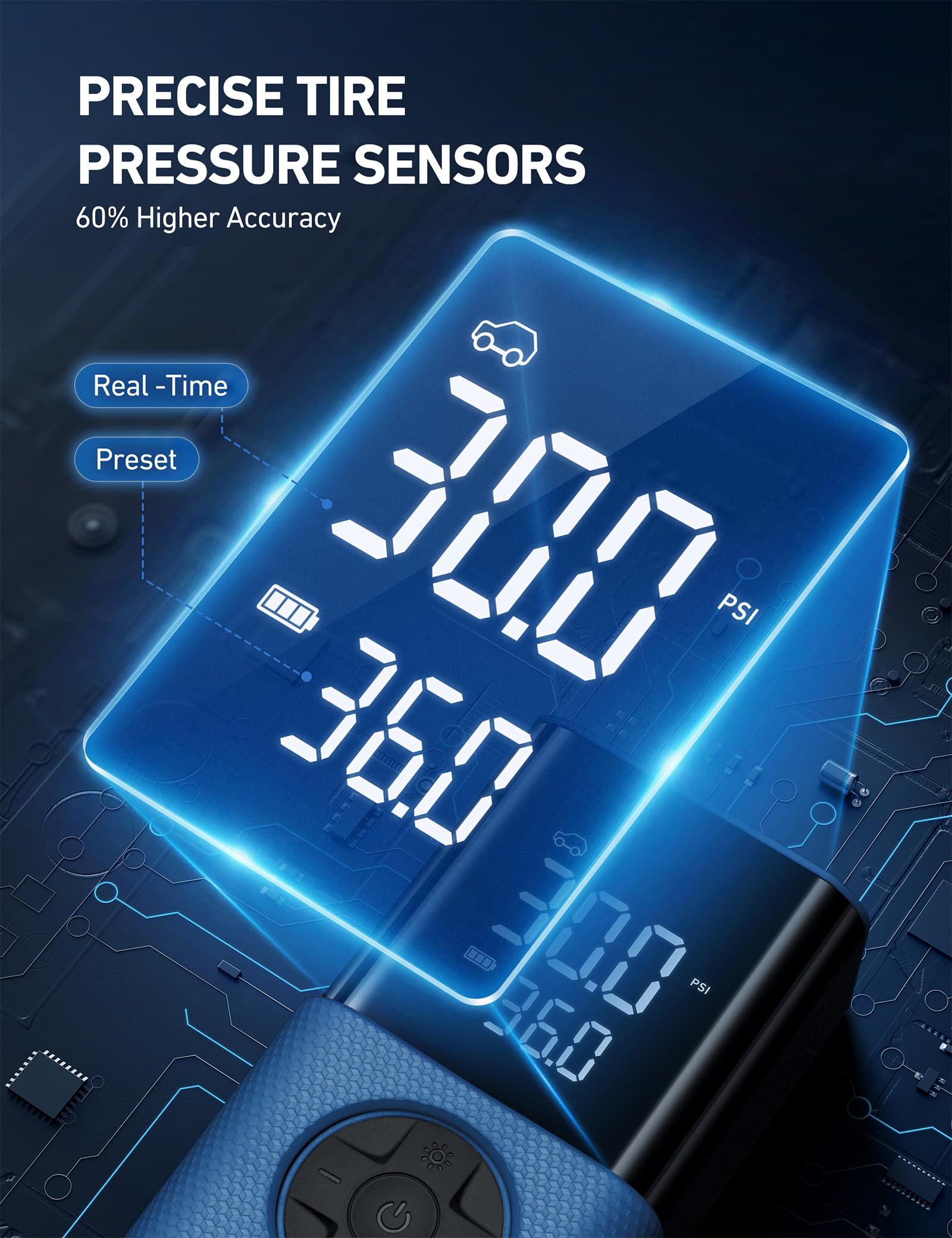ADVANCED “TRUEGAUGE” SCREEN: This air compressor’s upgraded tire pressure sensors collect data at a rate of 200 samples per second, ensuring incredibly accurate readings. The valid data rate is more than 80%, which is 60% higher than the market average. Ensure a safe drive wherever you roam.