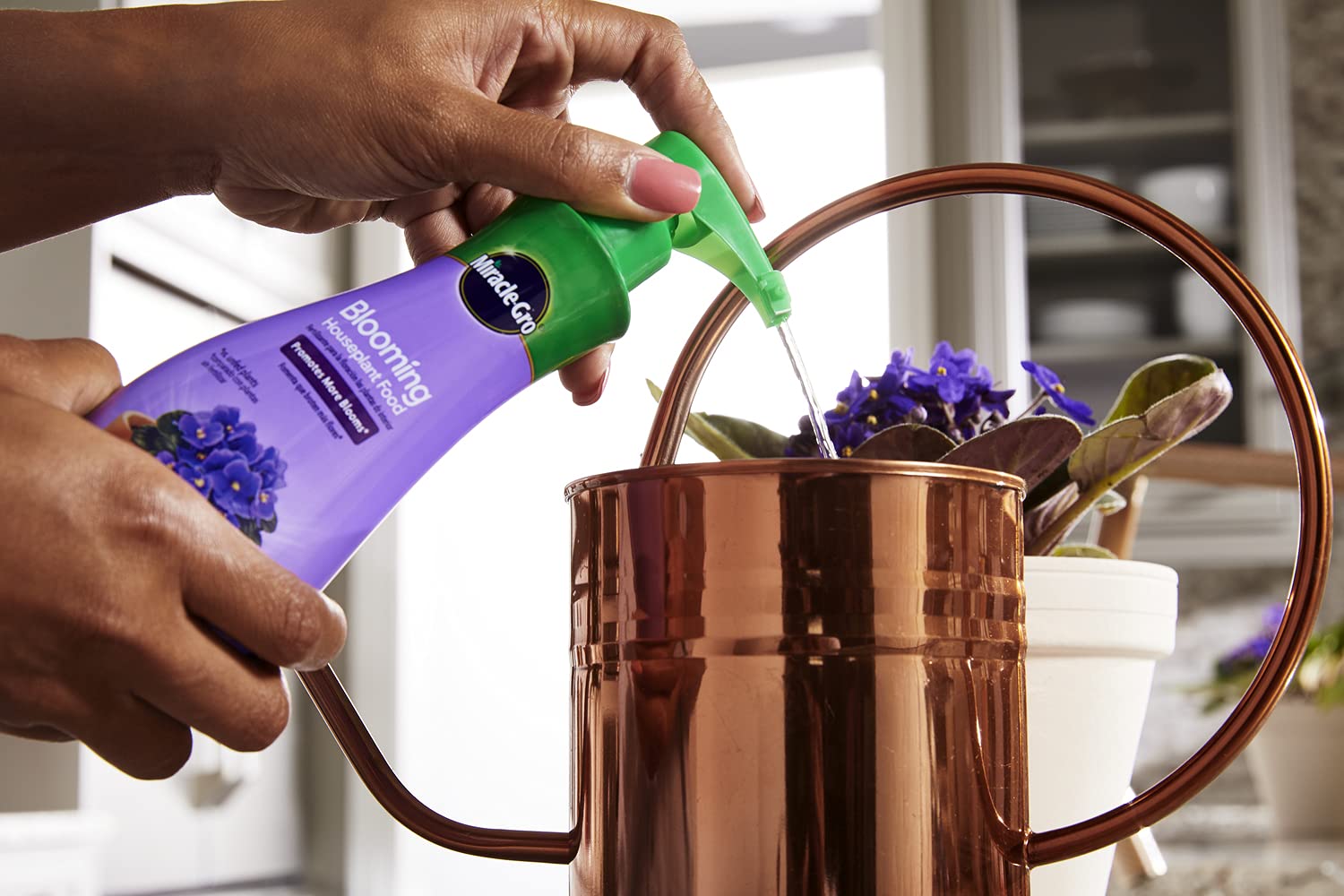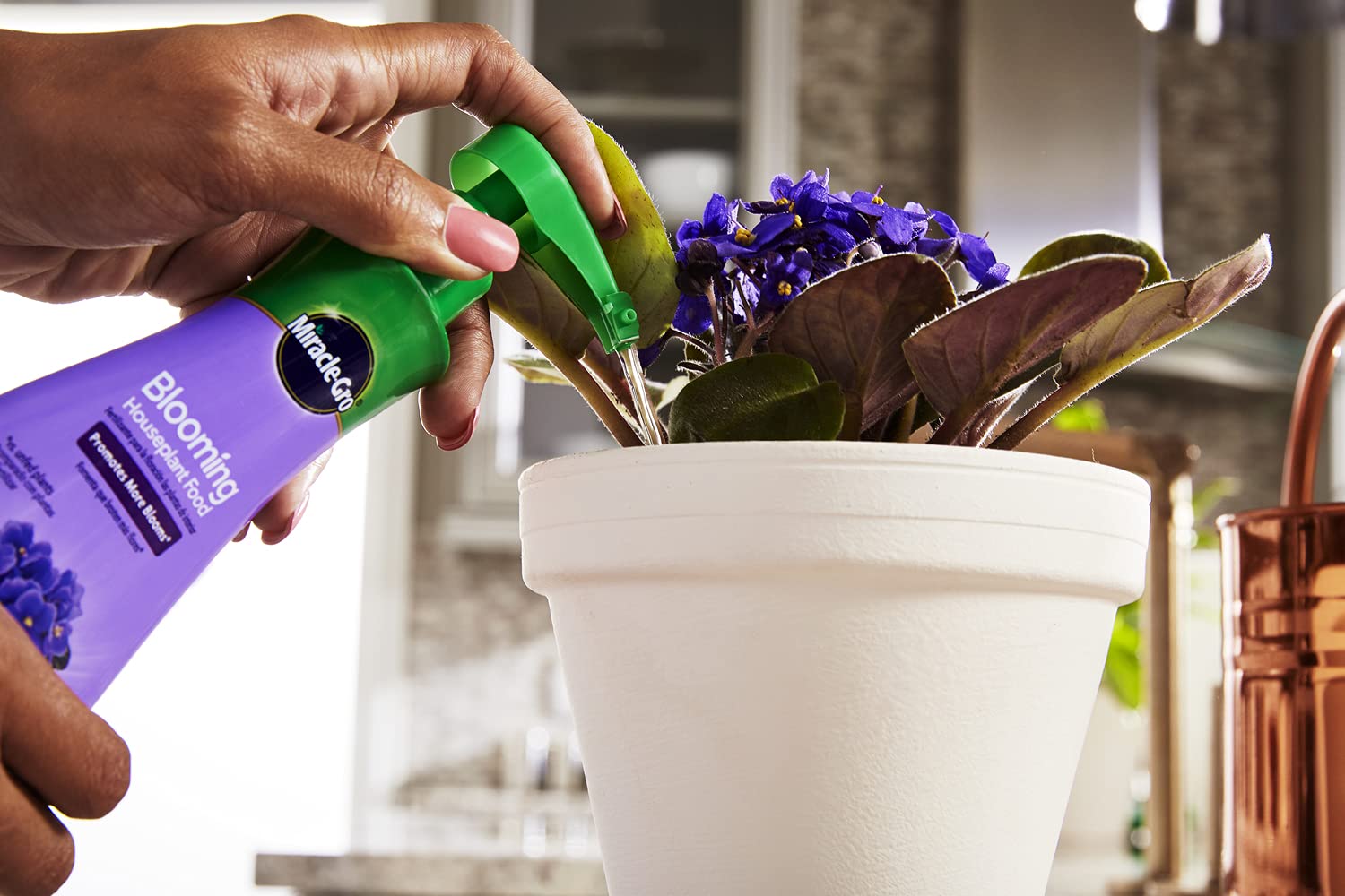 Promote more blooms on your houseplants compared to unfed plants with Miracle-Gro Blooming Houseplant Food. This formula instantly feeds all blooming houseplants, including African violets. Simply apply directly to the soil or mix with water, and apply once a week.