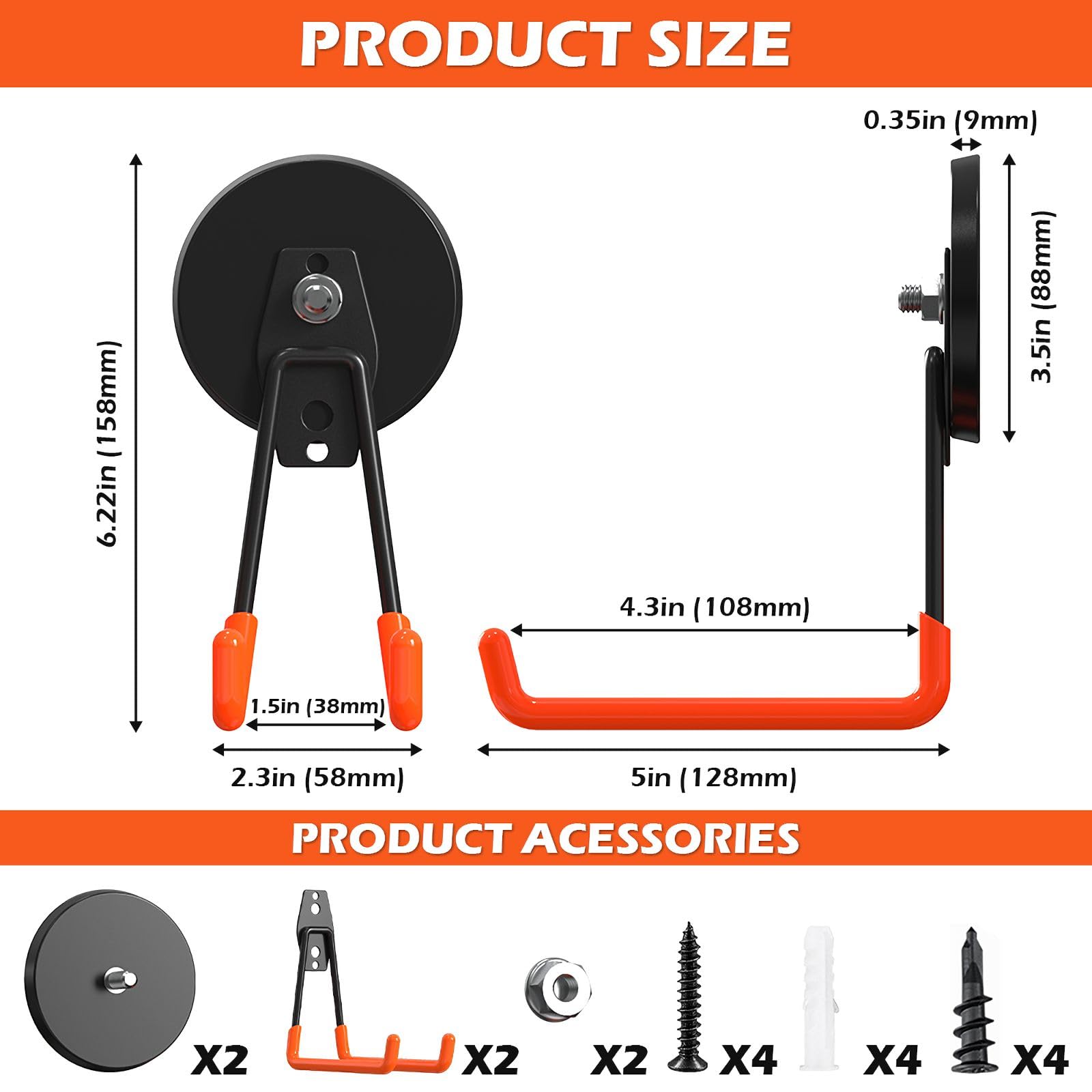 [WIDELY VERSATILE] The versatile magnetic hooks are suitable for hanging wreaths, backpacks, wrenches, power tools, ropes, ladder, mop, bag, vacuum and dog leashes, brooms, hoses, drill, dust pans, wire, toolbox, power and air tools, towels, extension cord, pick, helmet, kitchen utensil, etc. Extra large strong magnet hooks are incredibly versatile and once you get a couple of them you start finding uses for more