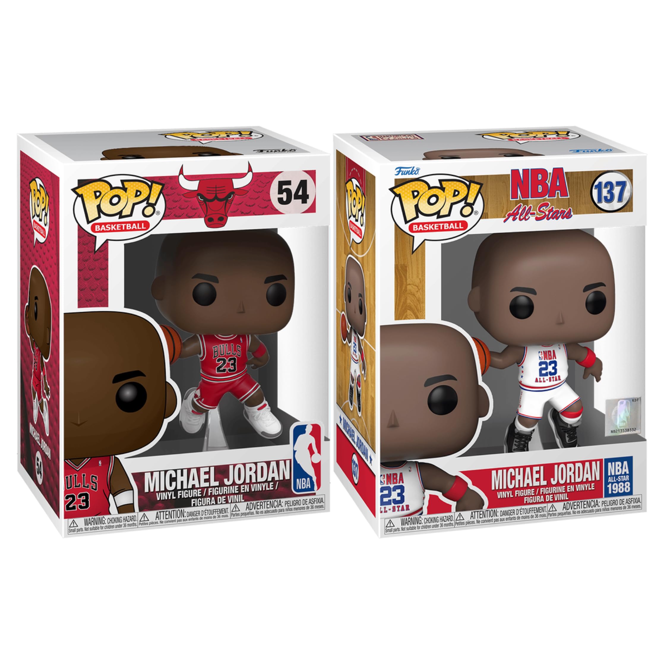 Celebrate the basketball greatness of Michael Jordan with this exclusive Funko Pop! NBA bundle. Featuring two iconic figures of MJ in his Chicago Bulls Jersey (#54) and 1988 All-Star Game Jersey (#137), this bundle captures key moments of his legendary career. Perfect for fans of "His Airness" and Funko collectors alike, these high-quality vinyl figures are a must-have addition to any collection. Display them together or individually to honor one of the greatest basketball players of all time.