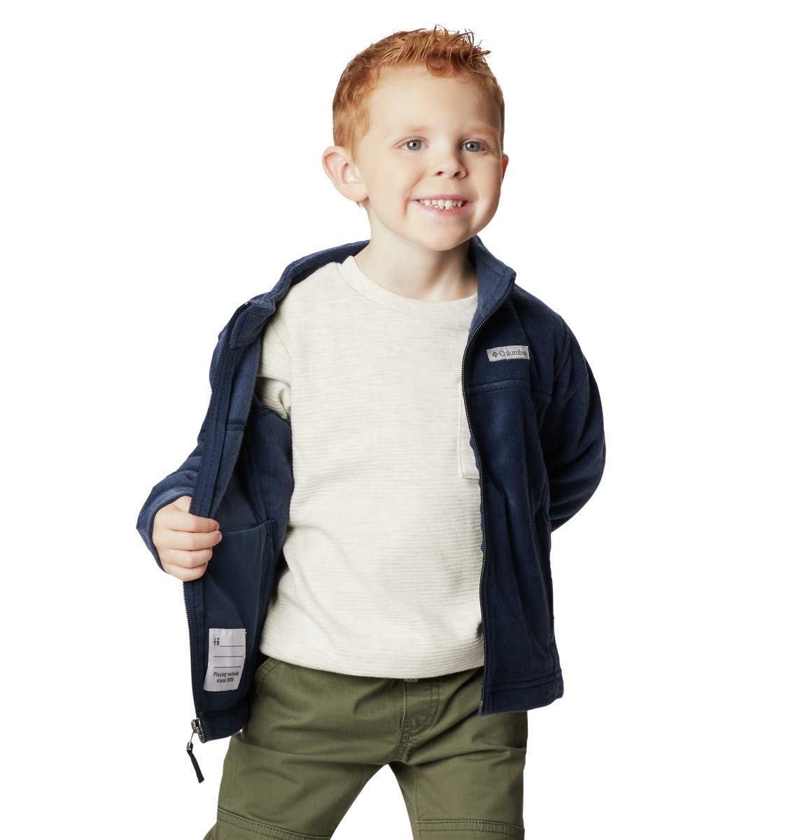 Description Product Description This full-zip fleece jacket is the perfect addition to their everyday wear—whether worn alone or as an extra layer. Your boy will be warm and care-free in this jacket crafted from our super deep 250g fleece. Whether worn on its own, or used as layer, your child will find great 3 season use in this everyday coat. Columbia offers this boy’s jacket in multiple colors and sizes. Regular Fit. To ensure the size you choose is right, utilize our sizing chart and the following measurement instructions: For the sleeves, start at the center back of your neck and measure across the shoulder and down to the sleeve. If you come up with a partial number, round up to the next even number. For the chest, measure at the fullest part of the chest, under the armpits and over the shoulder blades, keeping the tape measure firm and level.Center Back Length for Boys : 20.5". Center Back Length for Infant: 12.5". Center Back Length: 15". From the Manufacturer Fleece jacket with embroidered logo