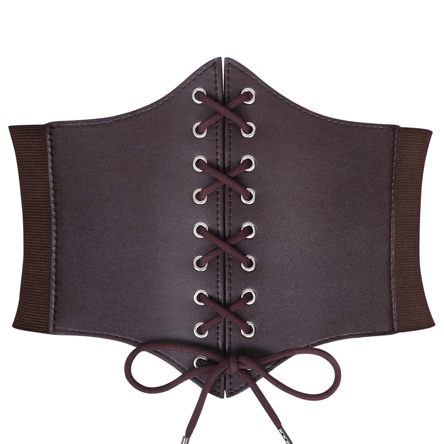 ➜ Black Corset Belt for Waist - Wide Costume cinching belt with tied corset leather on the front, elastic webbing band on the back, snap button closure to lock the belt,