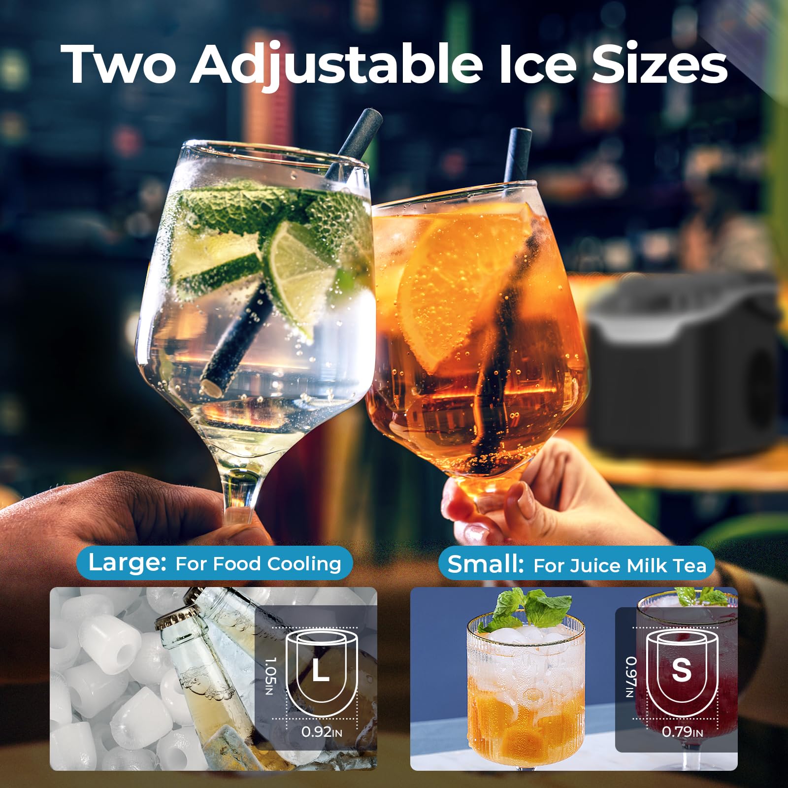 Road Trip-Ready Compactness:Fits anywhere with 8.66"x10.39"x11.22" footprint – Throw a countertop ice maker in your RV, tailgate setup, or beach cabana. Your ultimate hydration sidekick for adventures.