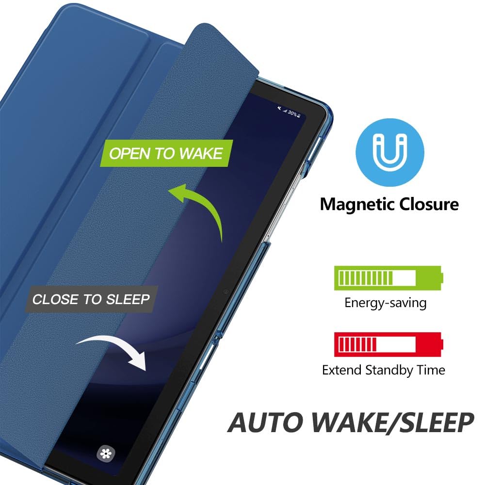 Auto Wake/Sleep: Built-in magnetic strip, automatically wakes or puts your tablet to sleep when the lid is opened and closed. this Tab A9 Plus Case Protects and extends battery life