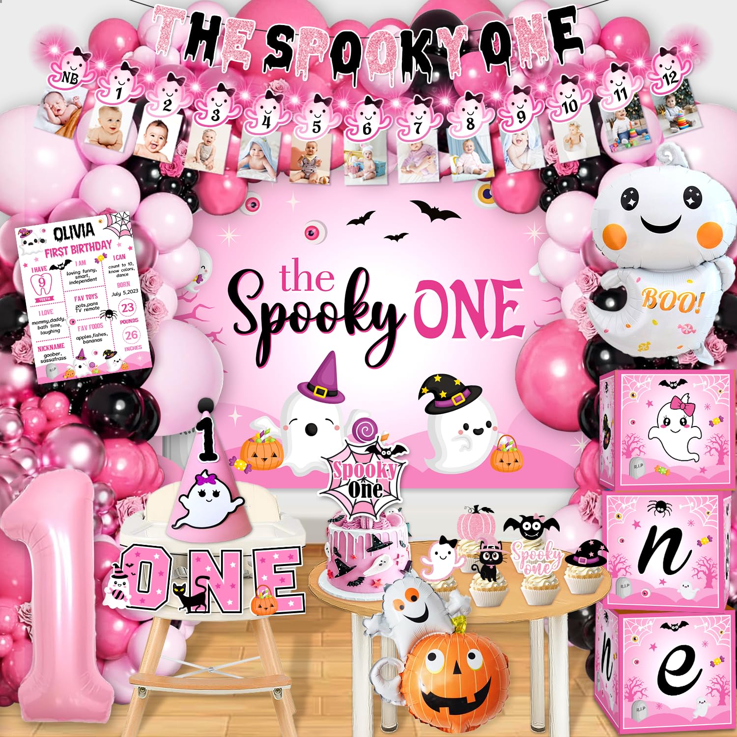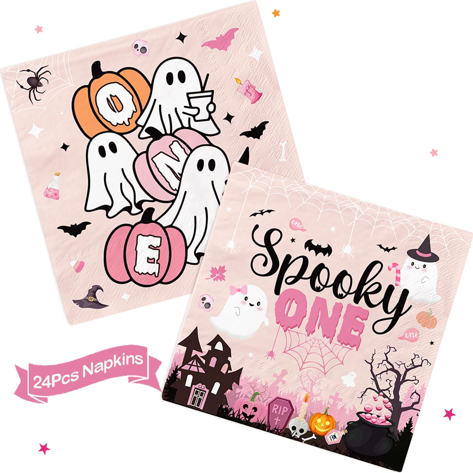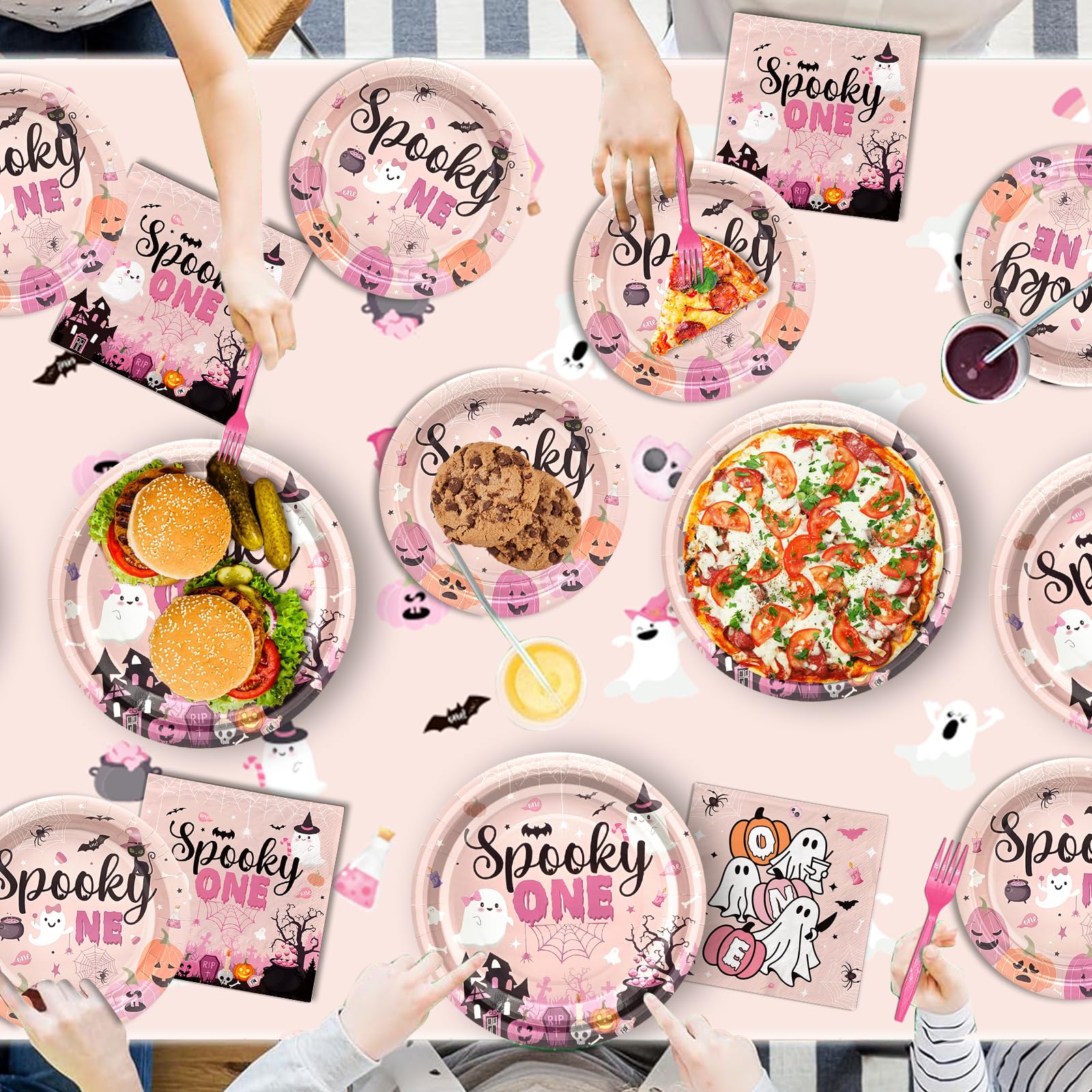 Package included: You will receive 1*"Spooky One" banner, 24*7"Spooky One Birthday paper plates, 24*9"Spooky One Birthday paper plates, 24*Birthday napkins, 72*plastic forks, 24*paper cups, 1*Spooky One Birthday tablecloth.