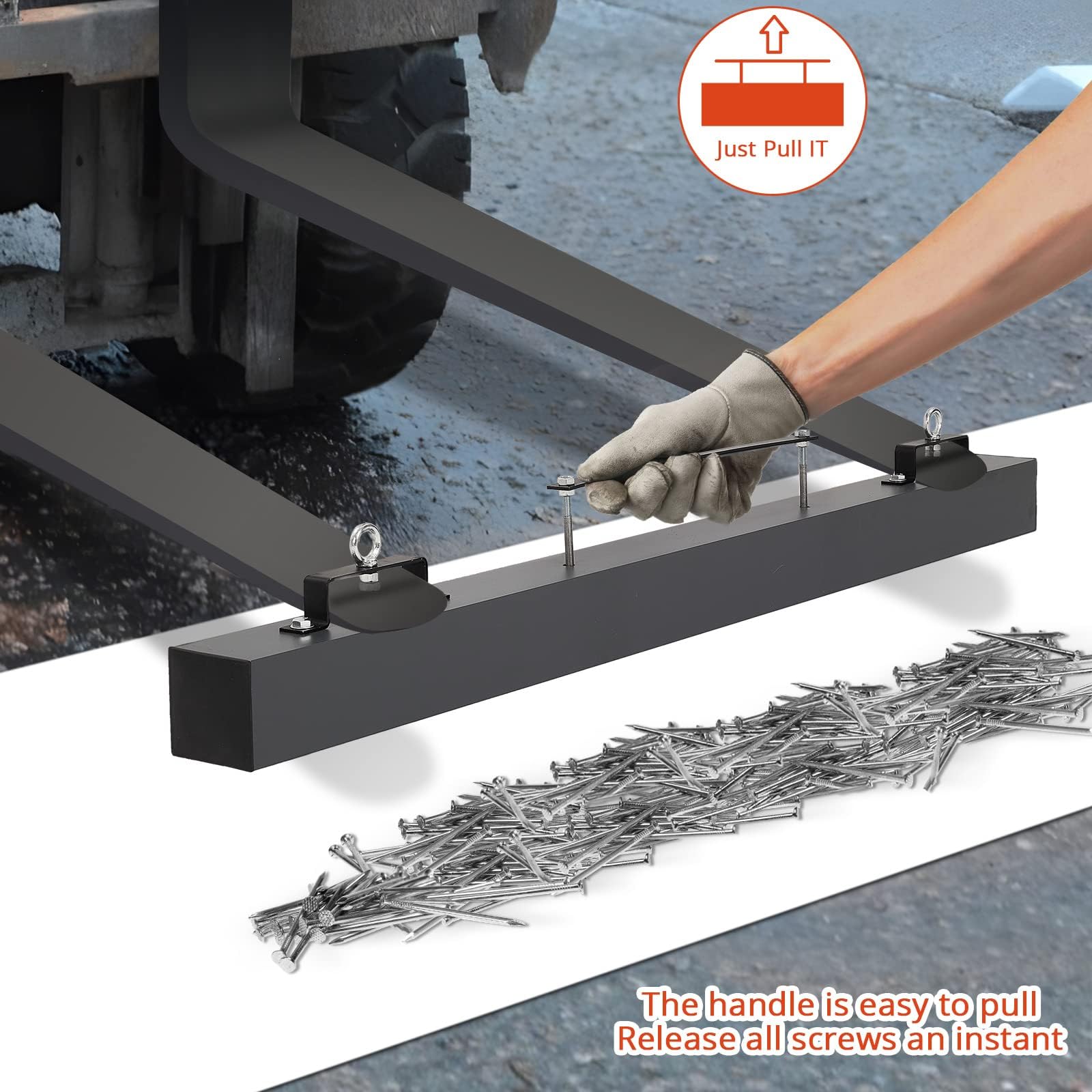 【Easy To Operate】: Simply attach the magnetic sweeper to a forklift or other vehicle using the built-in handles and eye bolts. Clear large areas like warehouses and construction sites effortlessly.