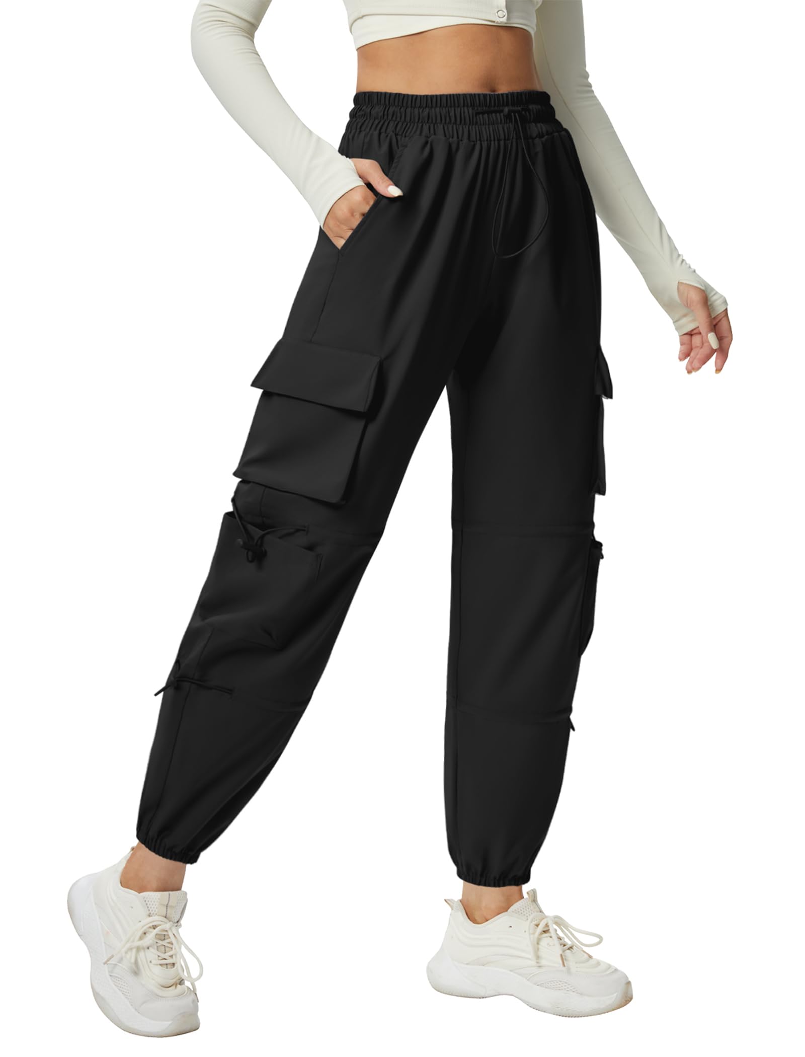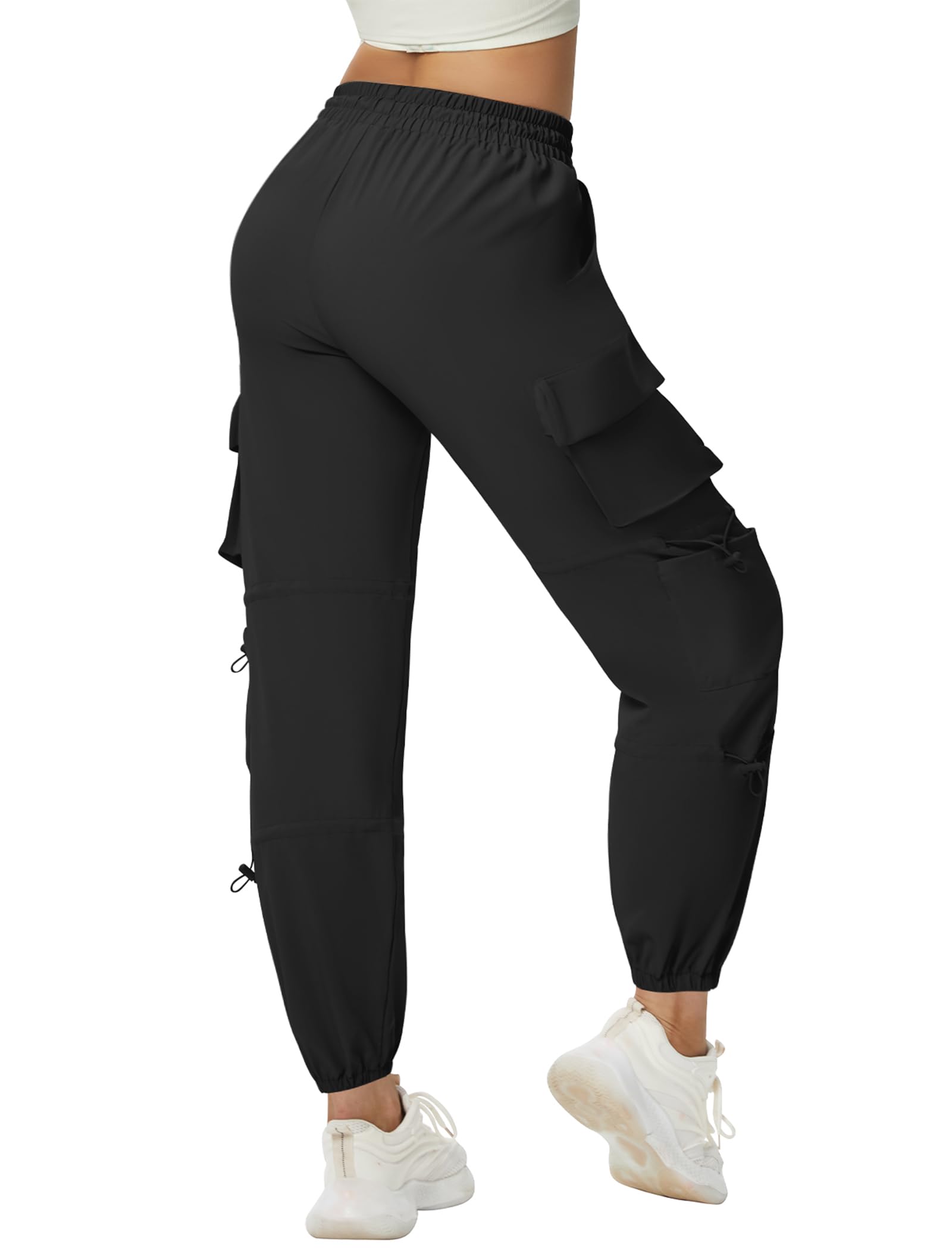 Multiple Pockets: The stretchy cargo pants have 6 pockets for sufficient carrying space, including two front pockets, two cargo pockets, and two side pockets.