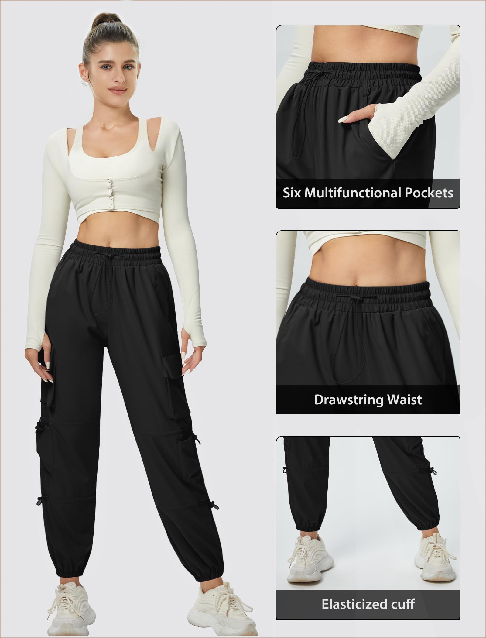 Stylish Design: Women's parachute pants feature a baggy style and tapered legs with an elastic cuff, providing a simple yet stylish overall look.