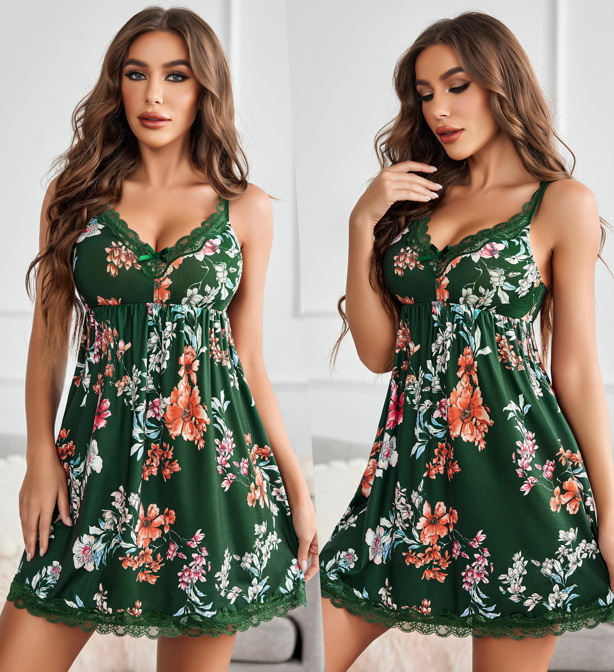 Design: Avidlove lace nightgowns featuring adjustable Spaghetti straps, V-neckline with bow decorate, Lace trims at neckline and hem, A-line silhouette hits at mid-thigh. Chemise sleepwear for women is super comfy and versatile, it can be a slip under your clothes, like coat or sweater, or wear to bed as a nightie, loungewear