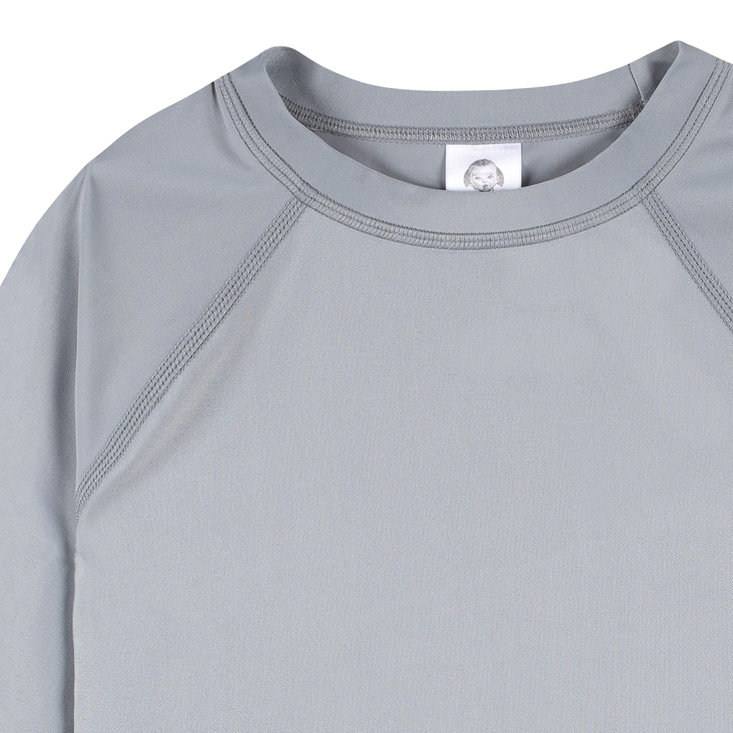 Features UPF 50+ rating on rash guards for great sun protection, comfy crew neck & long sleeves