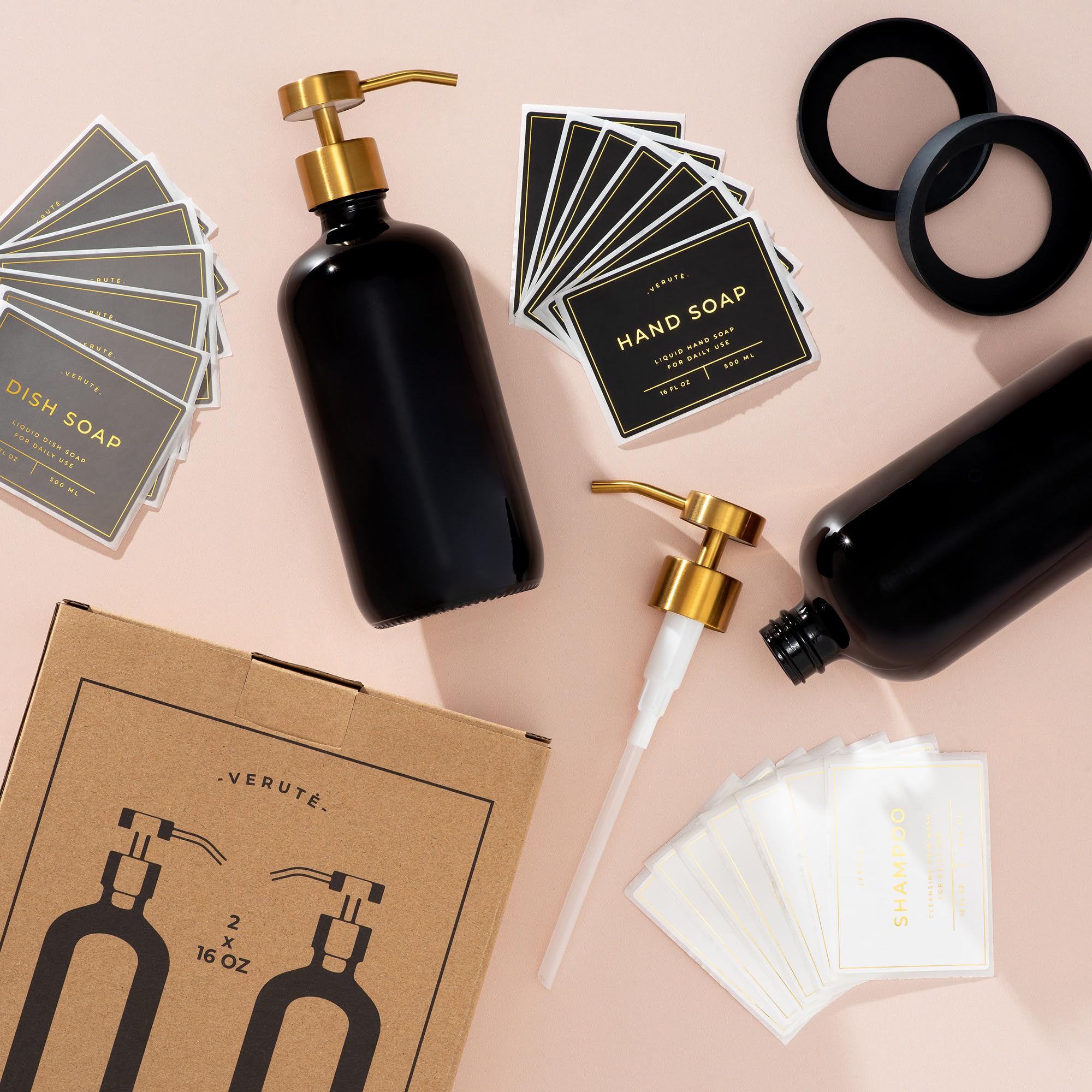 ADD STYLE TO YOUR SPACE - Gloss Black glass Boston round pump bottles will add an elegant touch to your bathroom and kitchen countertops.
