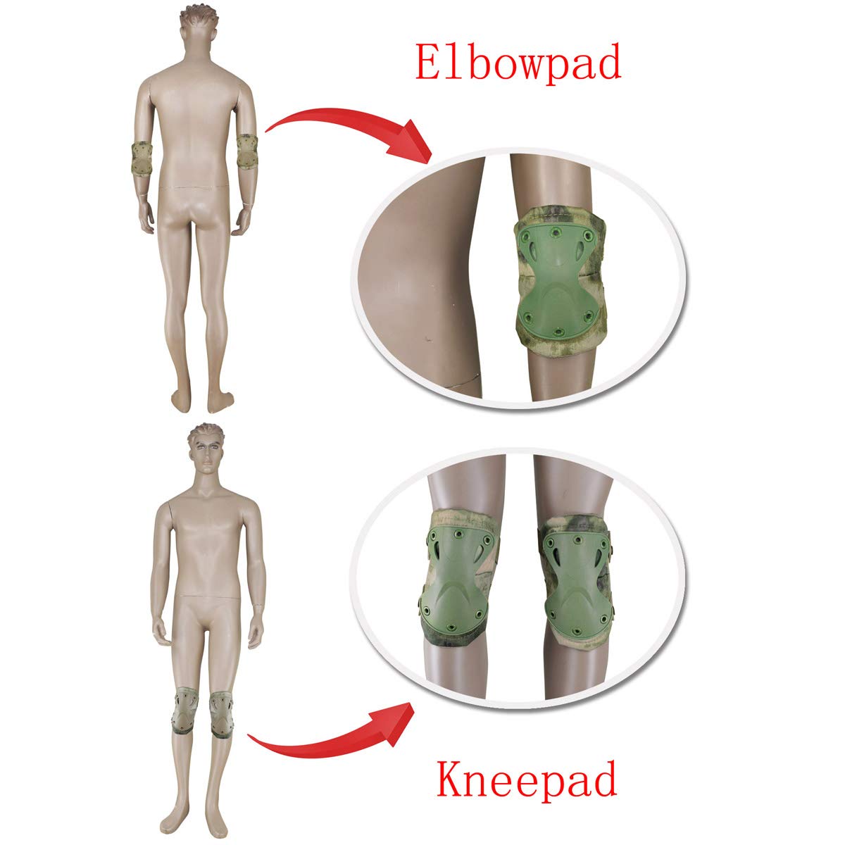 🏂Size:Elbow Pad Size: 5.1"*6.3" / 13cm*16cm; Knee Pad Size:6.3in*6.3in/16*16cm; Weight:390g.