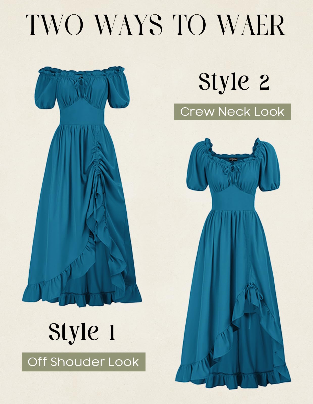 Transformable and Striking Elegance: Corset dress is a versatile piece that effortlessly switches between a short-sleeved, elegant Victorian style and a jaw-dropping, sexy off-the-shoulder look. Its ability to transform will leave everyone in awe of your fashion prowess