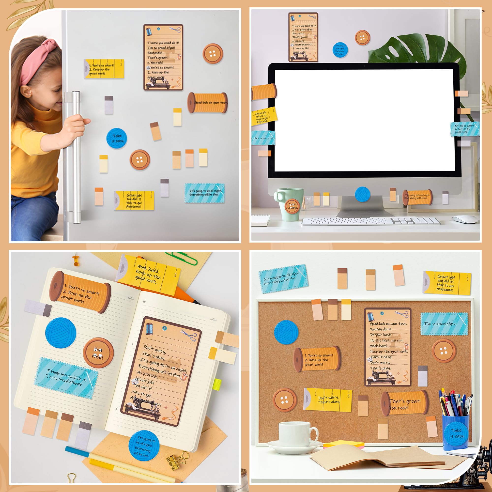Material: The sewing self-stick notepads are made of paper with soft surface, easy to write, long-lasting color, good stickiness. They can be used multiple times and without leaving glue when you remove them