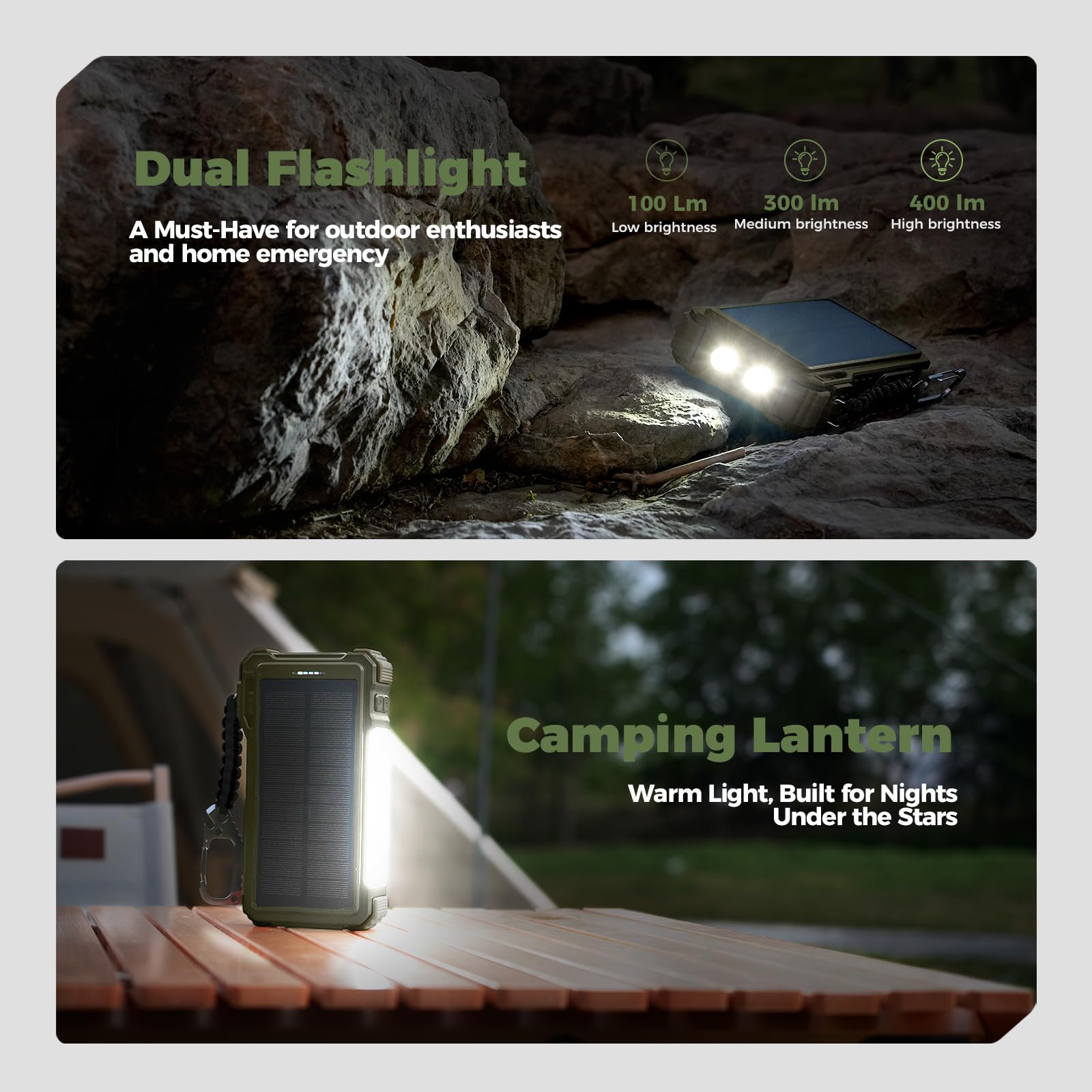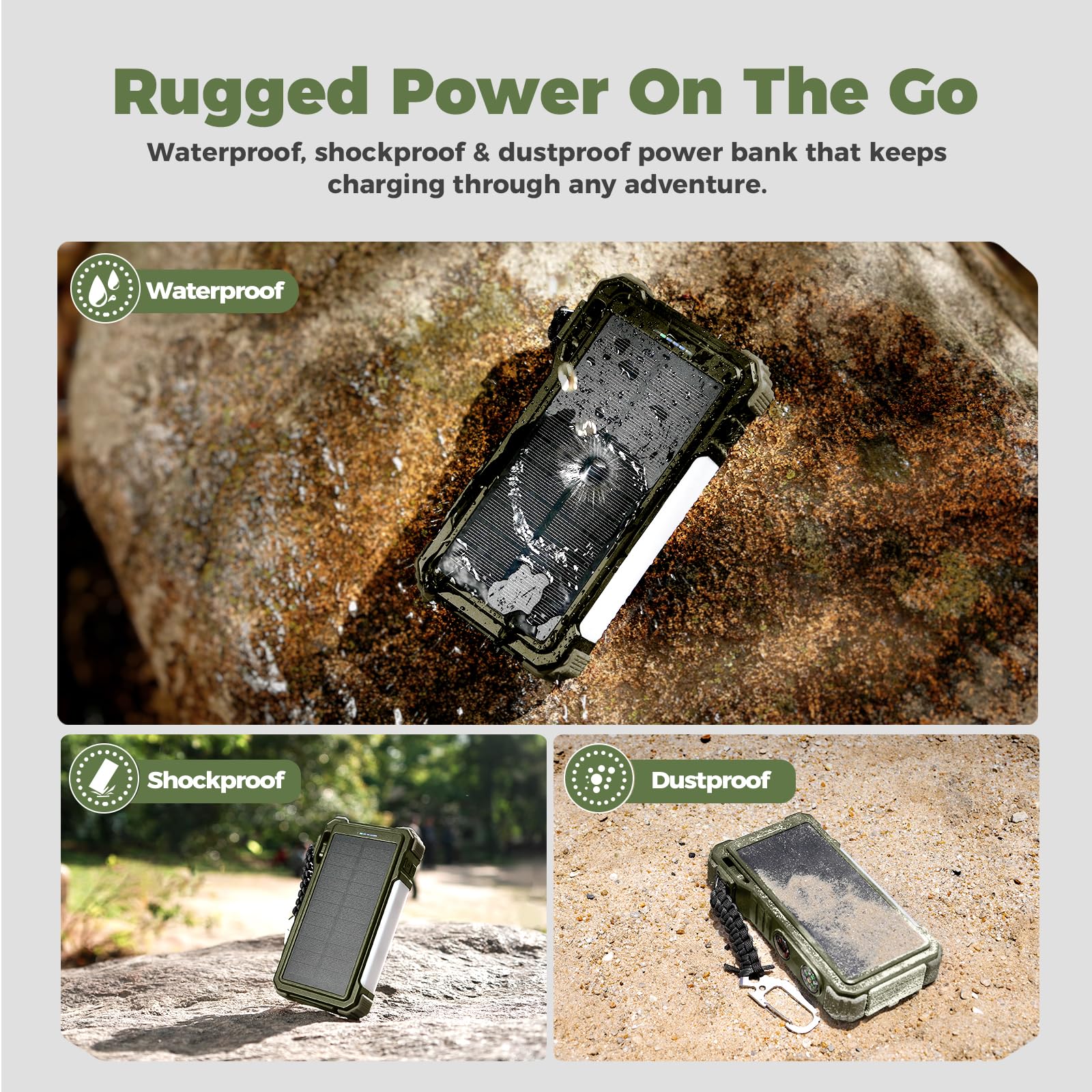 Durable And Adventure-Ready: Built to withstand anything nature throws at it, the BLAVOR solar charger power bank is a true warrior. Its flame retardant ABS+PC shell and waterproof silicone protection make it waterproof, shockproof, and dustproof, ensuring it can handle extreme conditions with ease. No matter where your adventures take you, this charger is up for the challenge