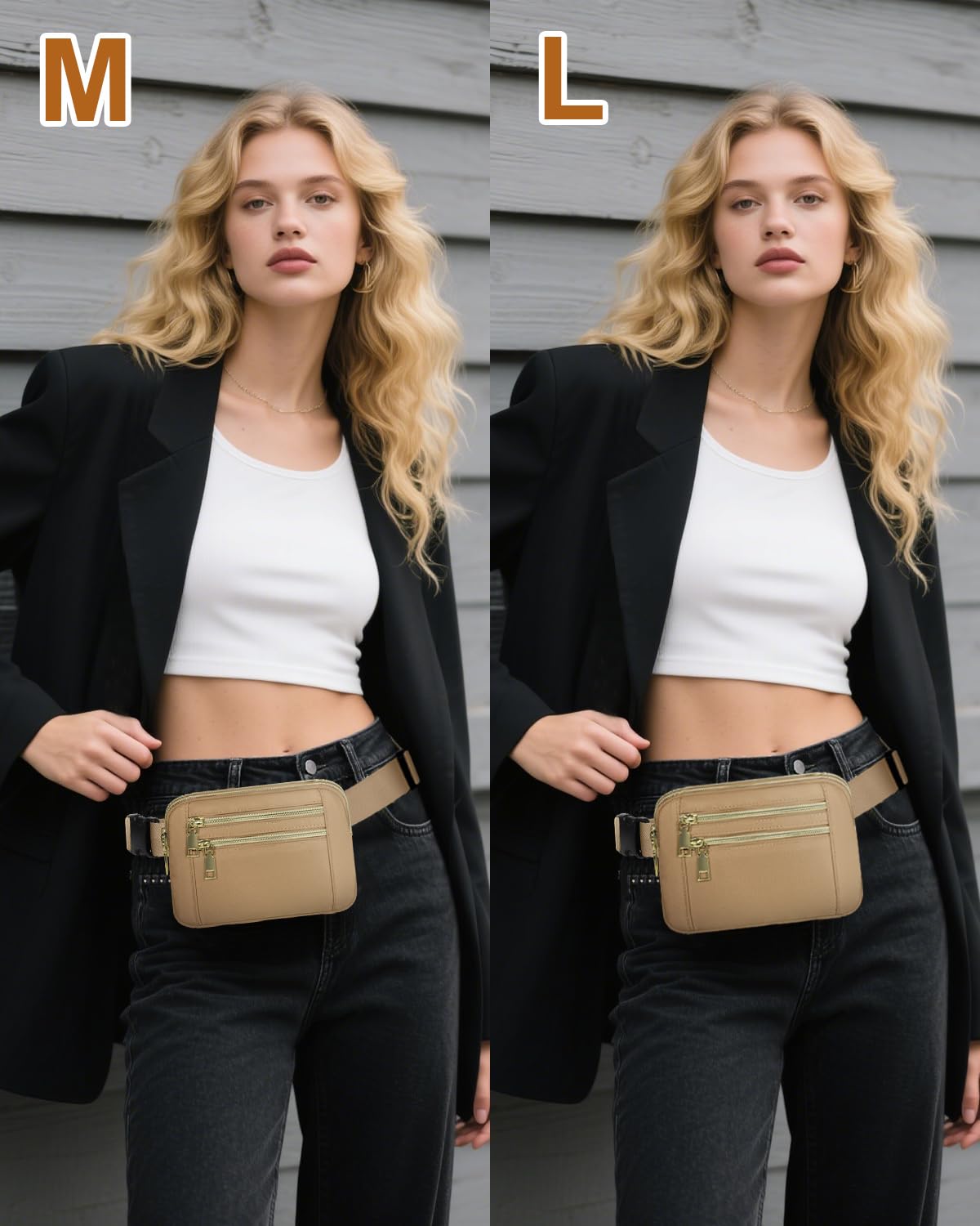 Medium Capacity with 4 Zipper Pockets: Our waist packs are available in 2 sizes(M: 7.4*5.7*1.5Inch; L: 8.3*6.7*1.6Inch). Please measure your waist before purchasing. Features 2 roomy compartments and 2 mesh slots, so all your essentials stay neatly organized and easily accessible. Say goodbye to digging through your bag! 2 zippered front pockets are designed to store keys and cards without worrying about the keys scratching your phone