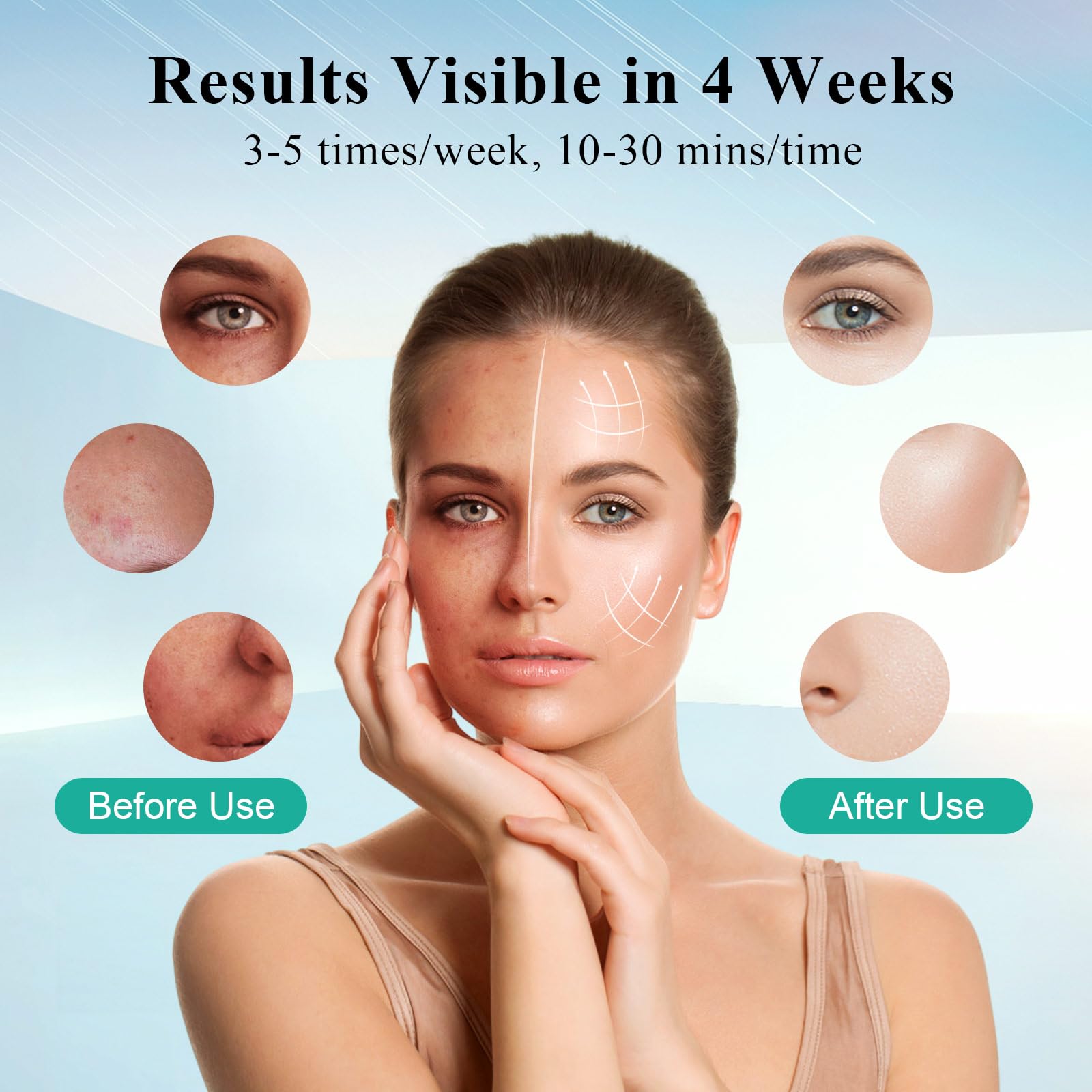 【240 LED Beads & Deep Repair】Red light therapy for face adopts innovative 4-in-1 chip technology, which increases the light wave aggregation effect by 4 times and the energy efficiency by 4 times, helping to improve the skin condition of the entire face. 3 levels of intensity adjustable, maximum 58mW/cm² high energy density into the skin cells layer by layer, promotes collagen regeneration, repairs skin, improves wrinkles, reduces acne, and brightens skin tone. The effect is visible within 4 weeks