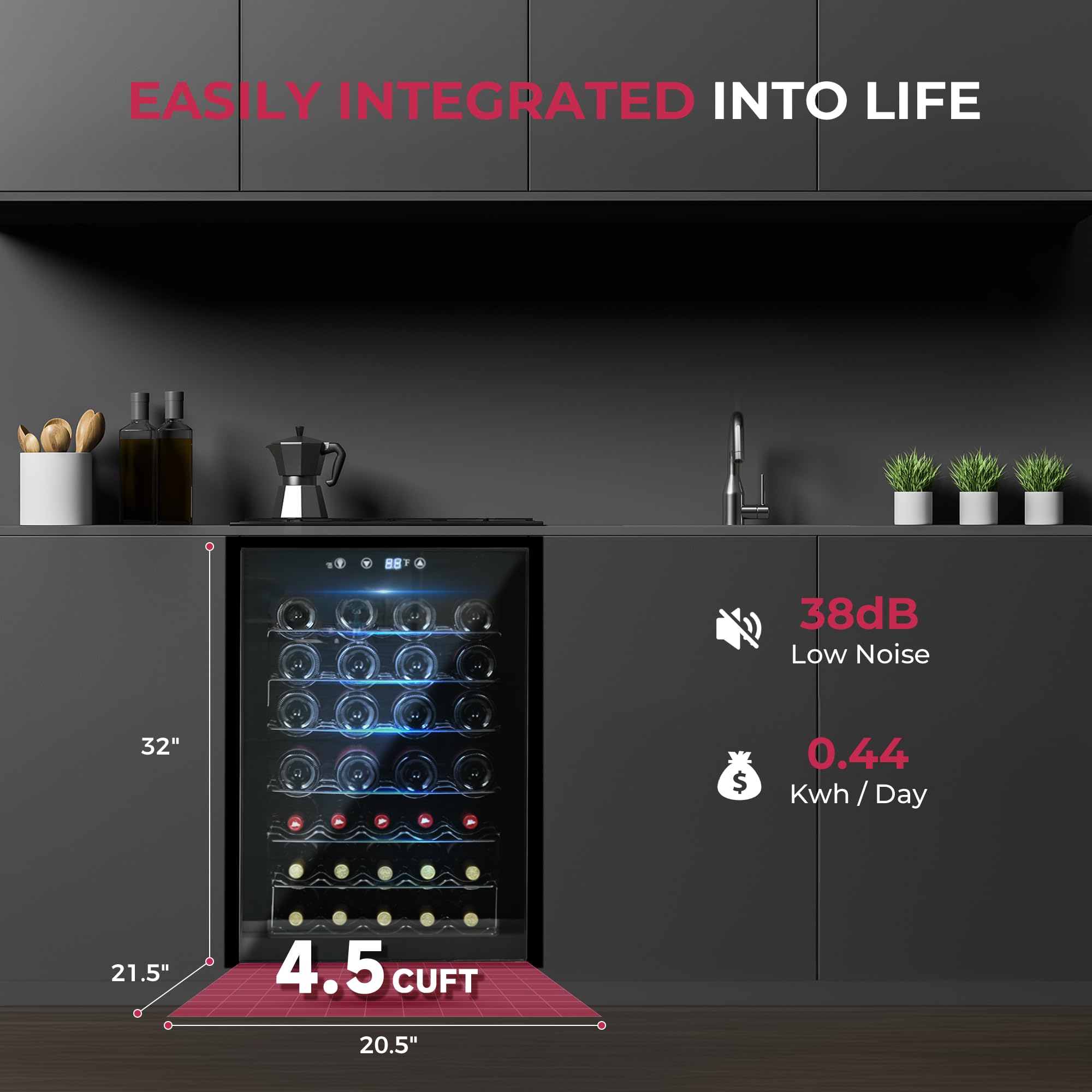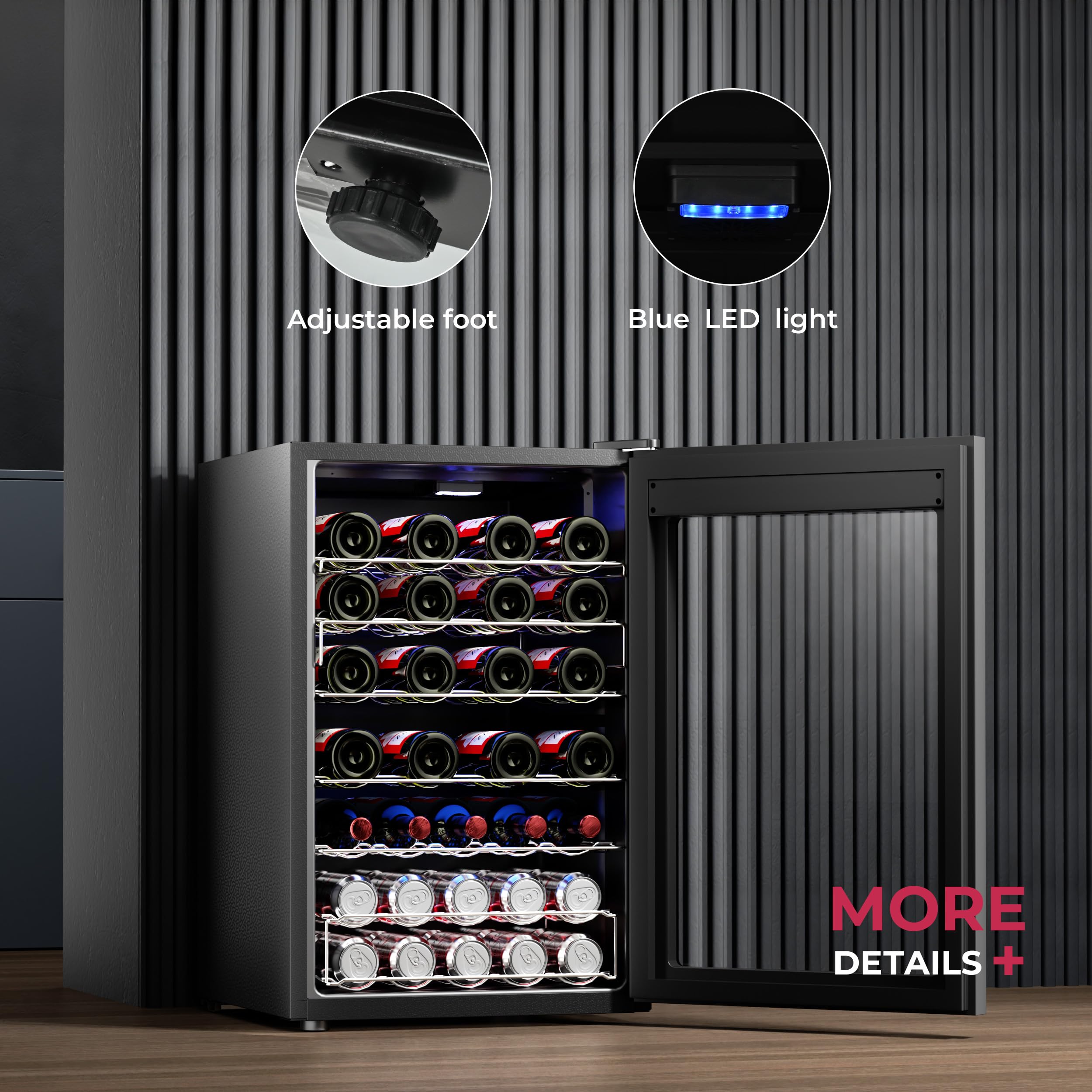 Powerful Compressor & Quiet Operation: This freestanding wine refrigerator uses advanced compressor cooling technology to minimize temperature fluctuations, helping your wines age beautifully while maintaining their flavor, all with low noise operation