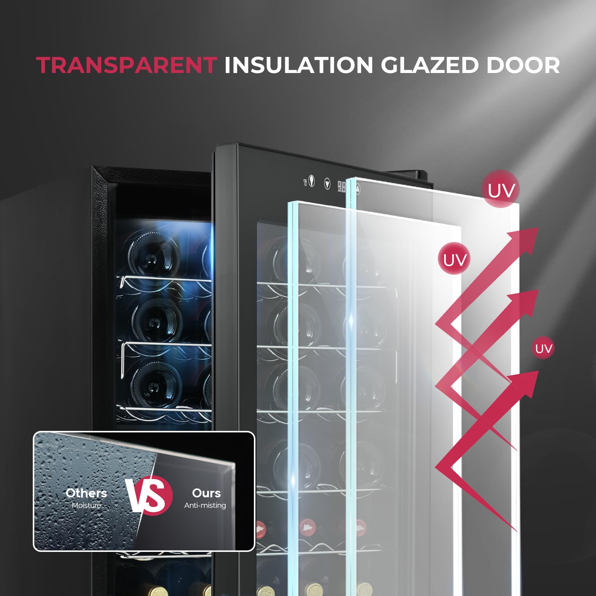 Multi-Functional Features: The wine cooler includes a double-layered stainless steel tempered glass door that protects your wine from harmful vibrations and UV rays, preserving its quality. Plus, it features a premium internal LED light for a stunning display