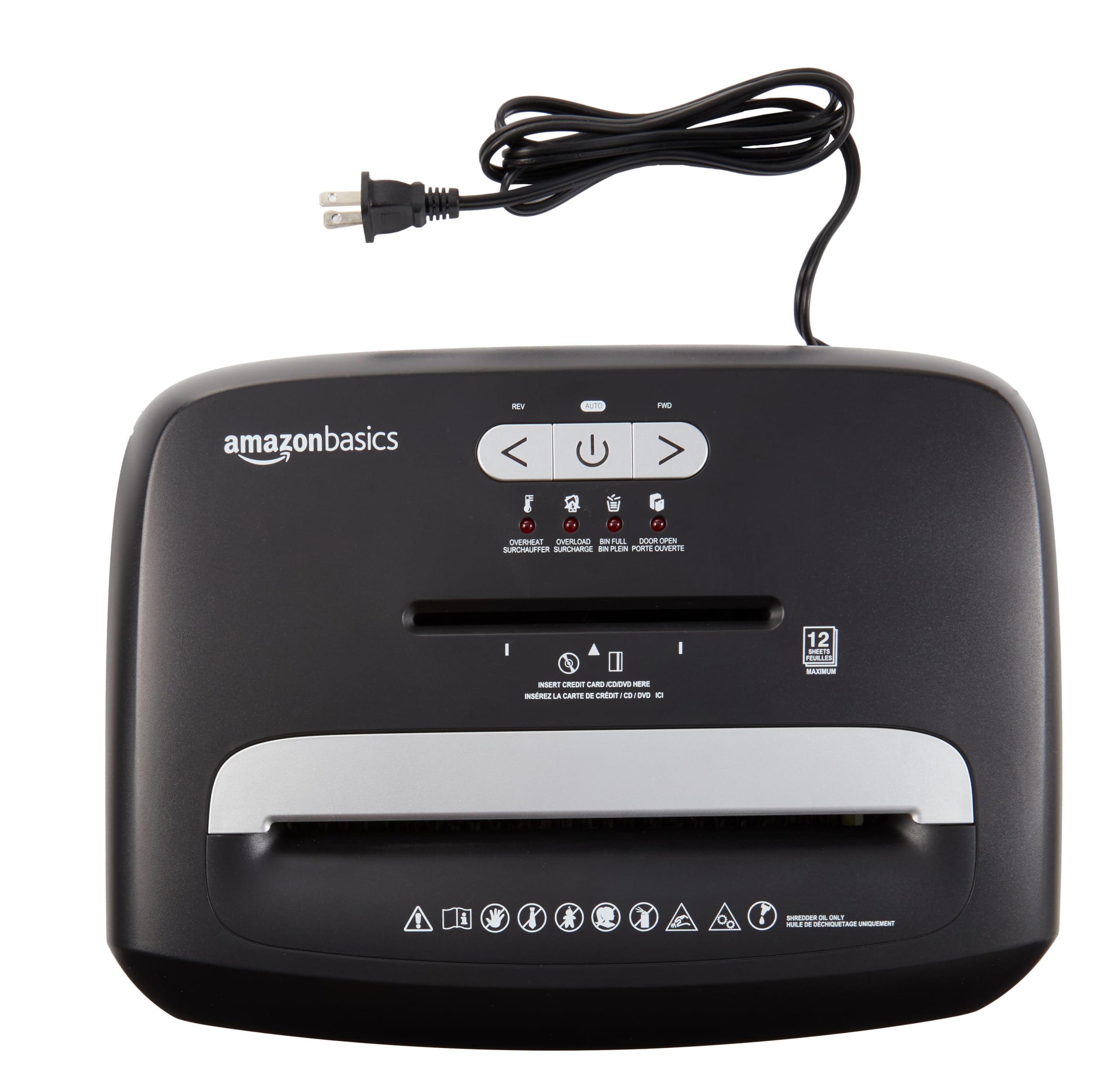Shreds up to 12 sheets of 20-pound bond paper at a time, including staples and small paper clips; 8.7-inch-wide entry