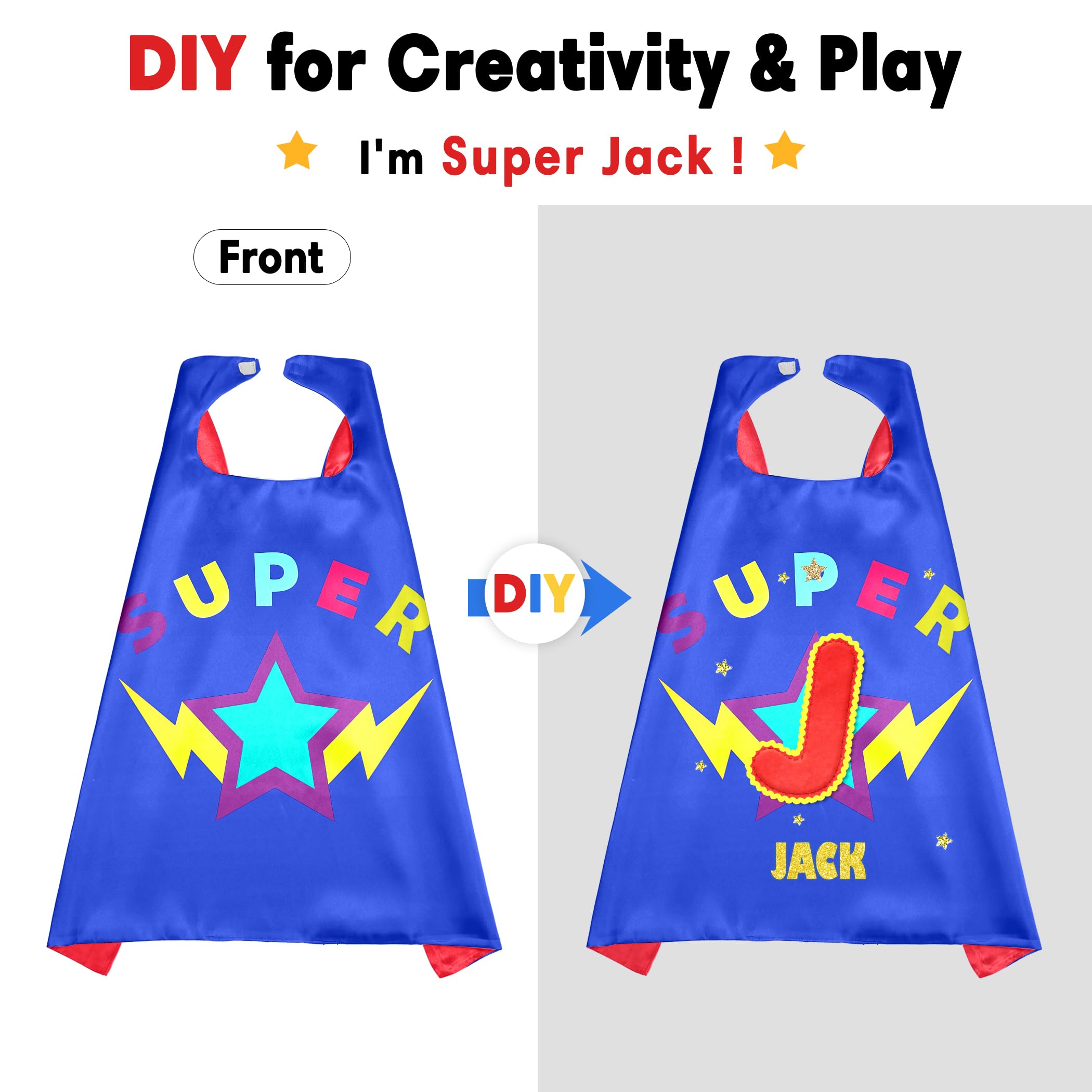 Tips: For the best look possible, the star superhero letter capes should be ironed on VERY LOW heat before wearing. We make sure that every CAPE is made with high material